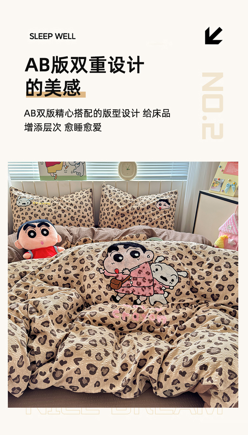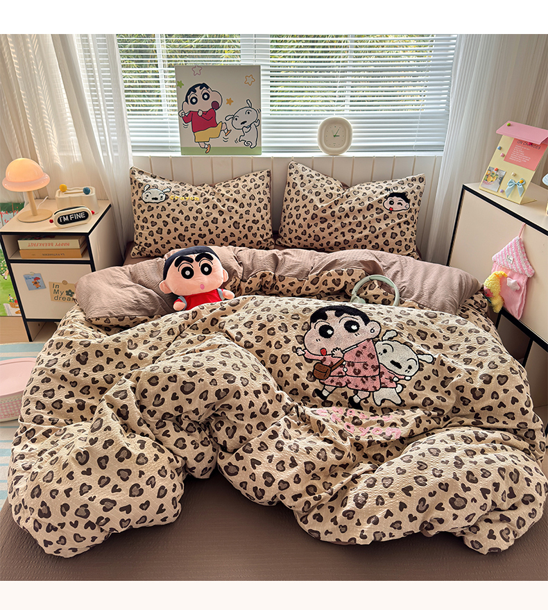 (总)三元色 2026新款泡芙双层纱豹纹系列四件套