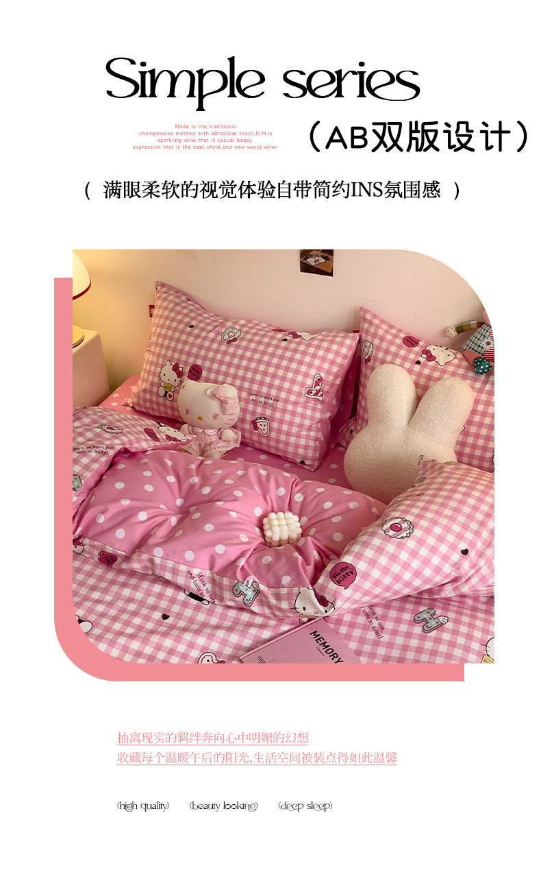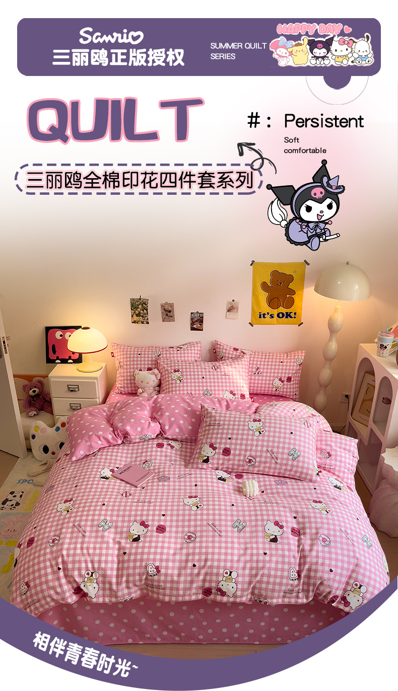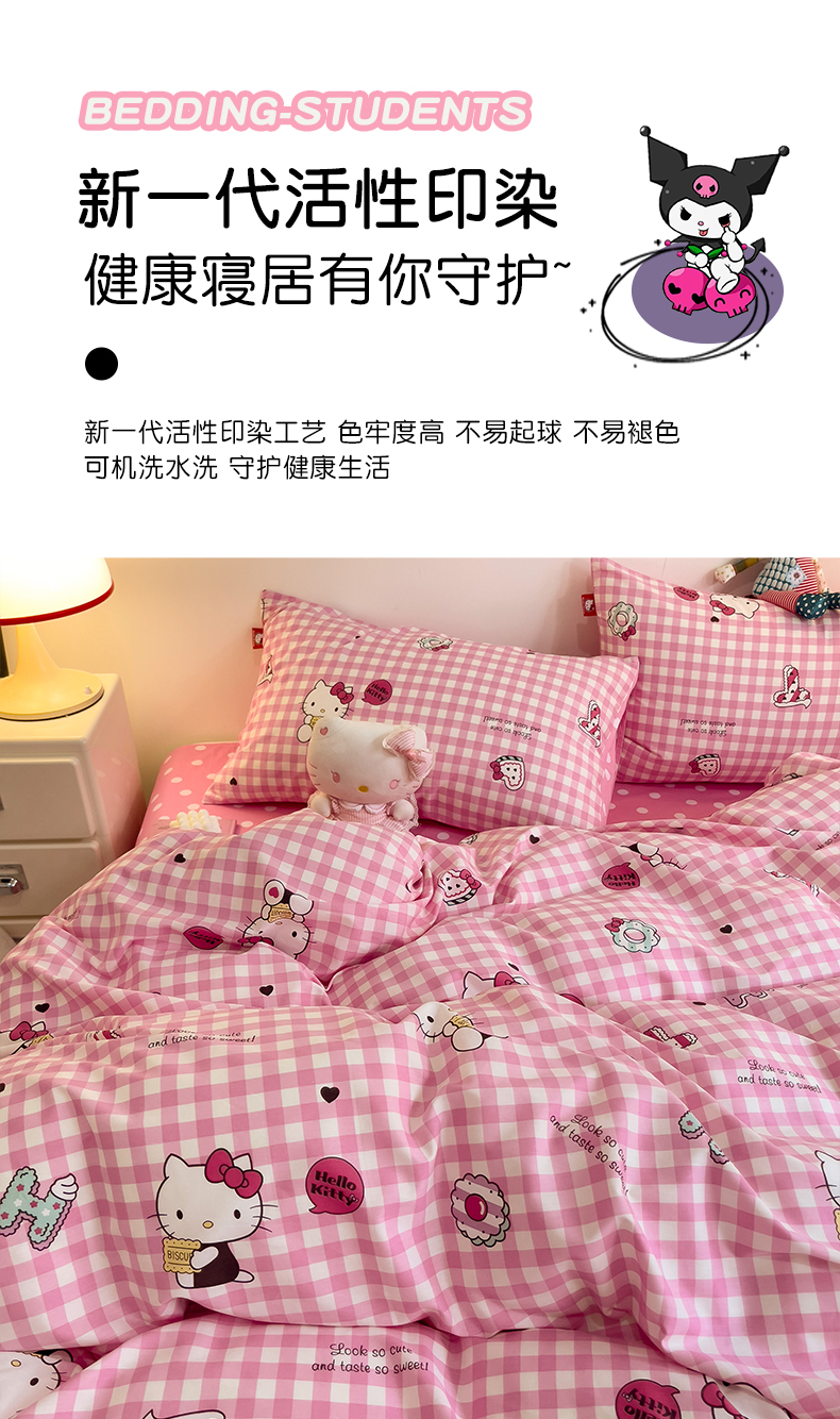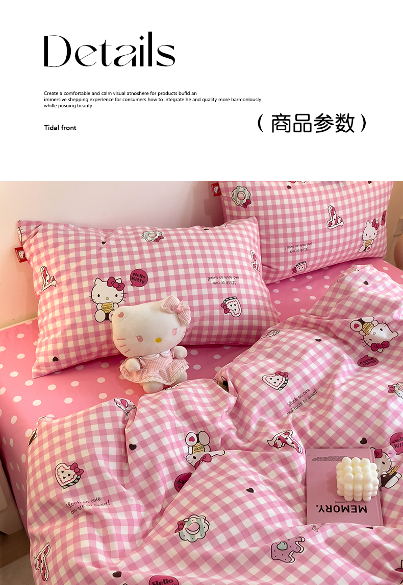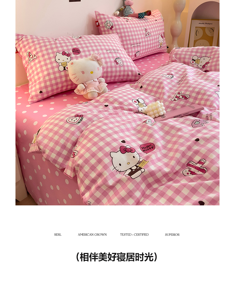 当前位置: 91家纺网 > 商品网购 > 床品套件 > 四件套 > 全棉普通四件套 > 朵希曼 2026新款正版授权全棉纯棉三丽鸥系列 粉格凯蒂