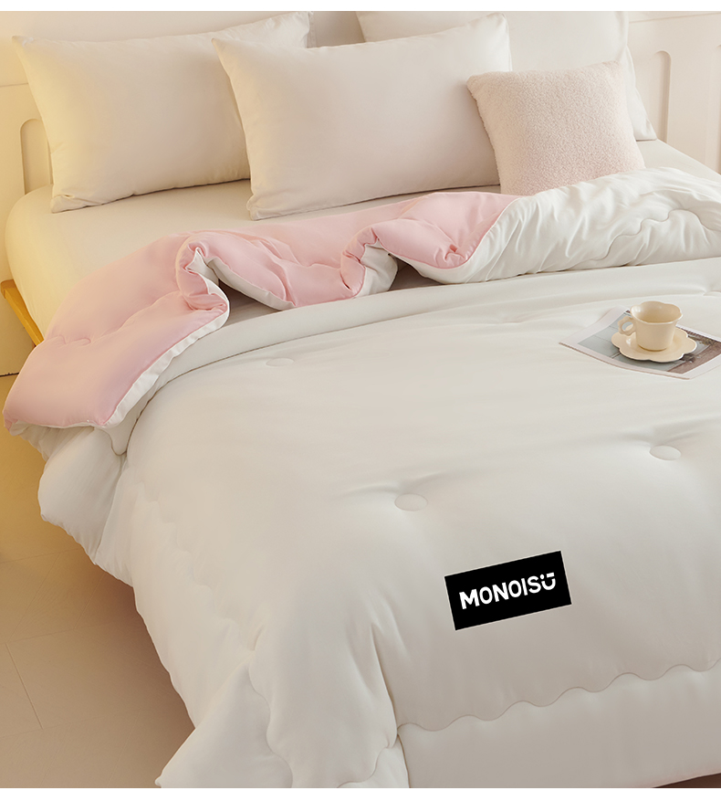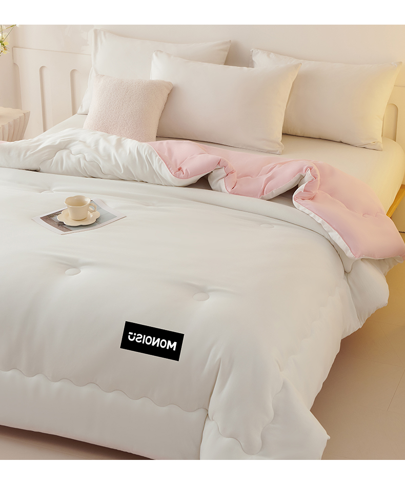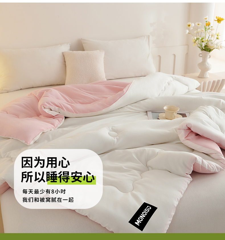 (总)好尚居 2026新款泡泡纱拼色超柔云感大豆被被子被芯,白拼绿,白拼粉,白拼灰,粉色,灰色,米白
