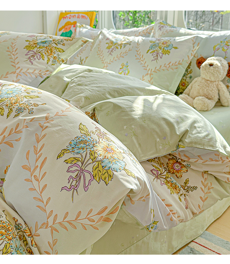 (总)佳汐蓝家纺 2026新款春夏100支全棉复古风数码印花四件套--罗曼花园,罗曼花园