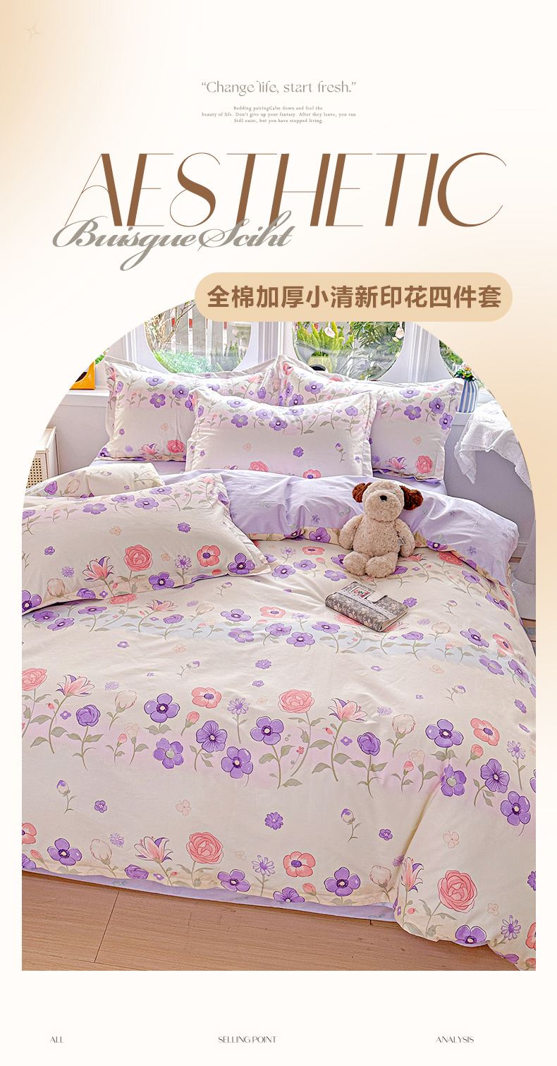 当前位置: 91家纺网 > 商品网购 > 床品套件 > 四件套 > 全棉普通四件套 > 佳汐蓝家纺 2026新款全棉纯棉加厚13376印花四件套 樱雪