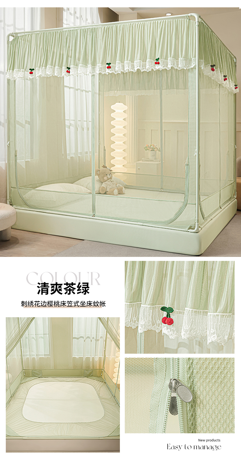 当前位置: 91家纺网 > 商品网购 > 床上用品 > 蚊帐 > 坐床式蚊帐 > 雪姿家纺 2026新款T+U型刺绣花边床笠回底款三开门外穿坐床蚊帐-坐床樱桃 刺绣花边樱桃-温馨粉玉