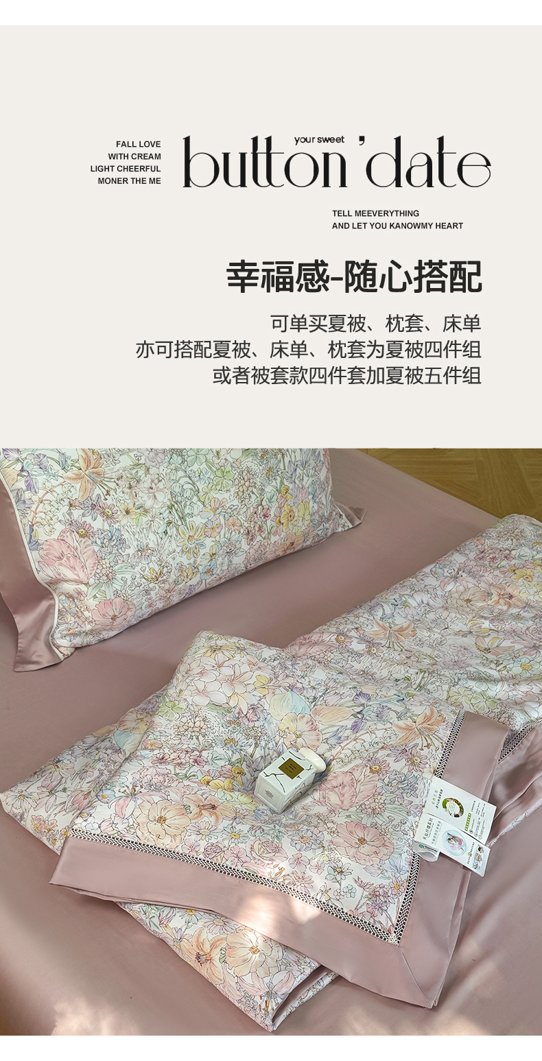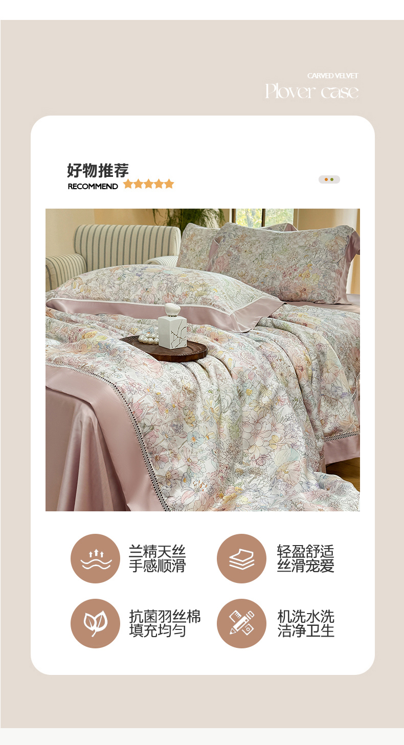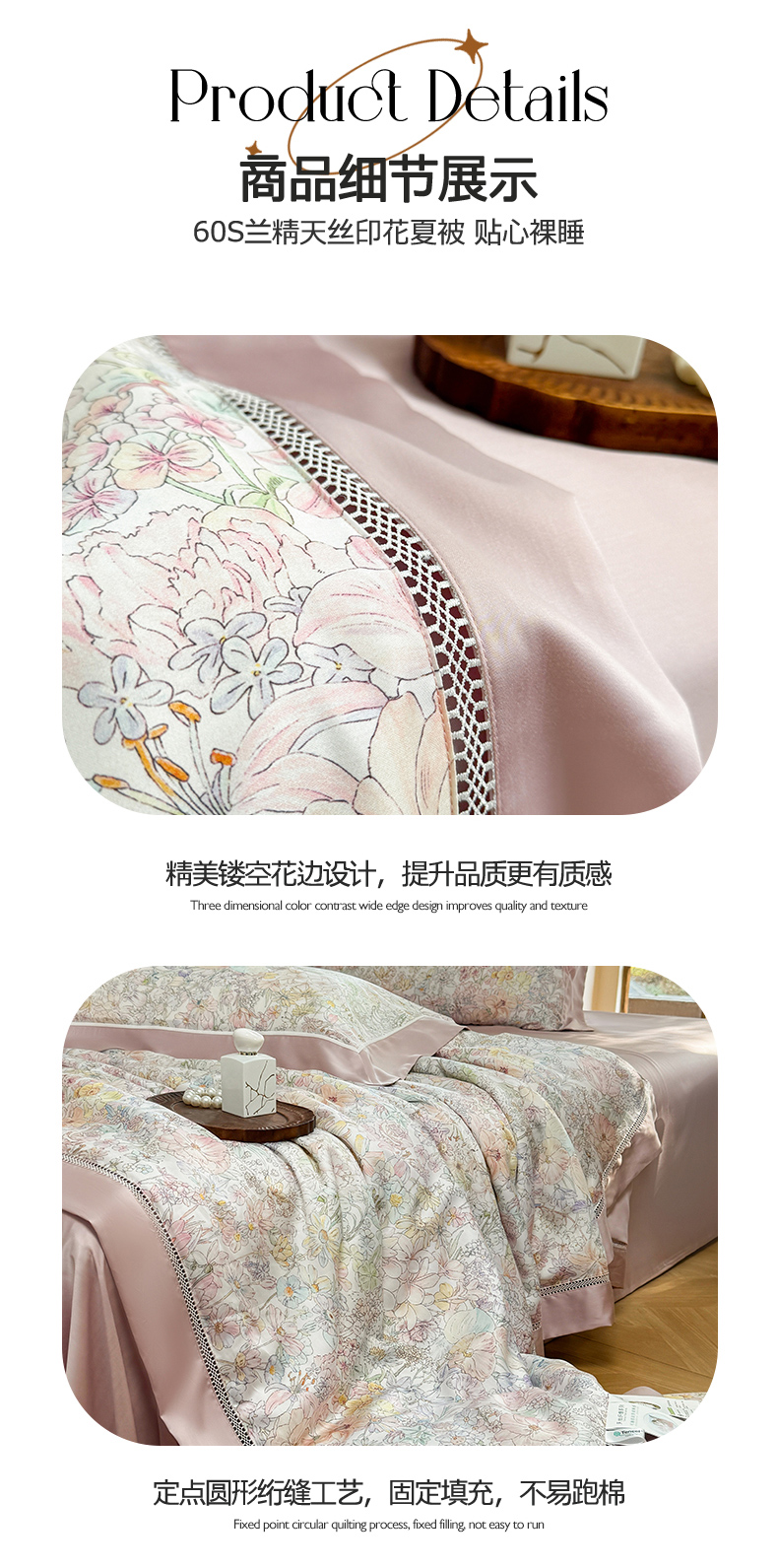 商品名称:娇逸家居 2026新款60s天丝数码印花夏被夏凉被空调被四件套 妙颜-粉
