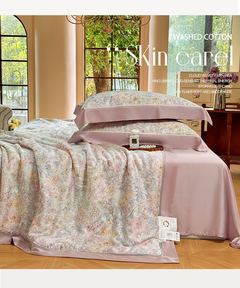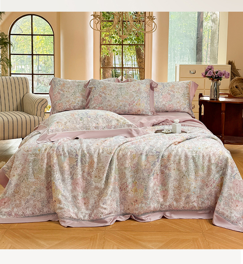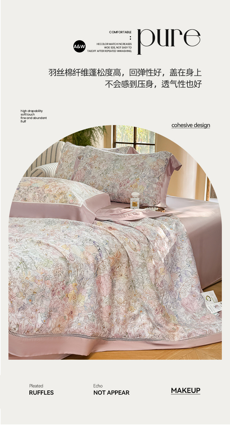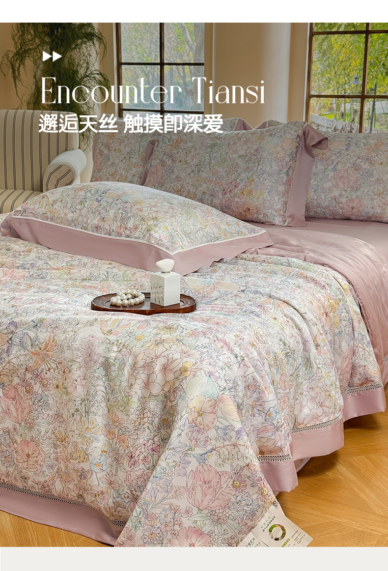 娇逸家居 2026新款60s天丝数码印花夏被夏凉被空调被四件套 妙颜-粉