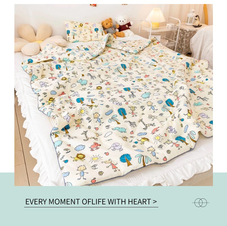 (总)十九色 2026新款液态硅胶奶嘴同源天丝棉飞边凉感夏被夏凉被空调被,小蓝心,小兔兔,草莓多多,花园里,田园趣事,小布偶
