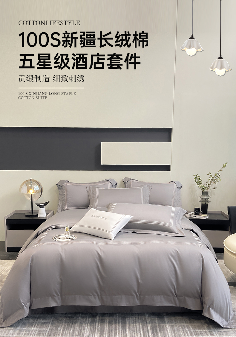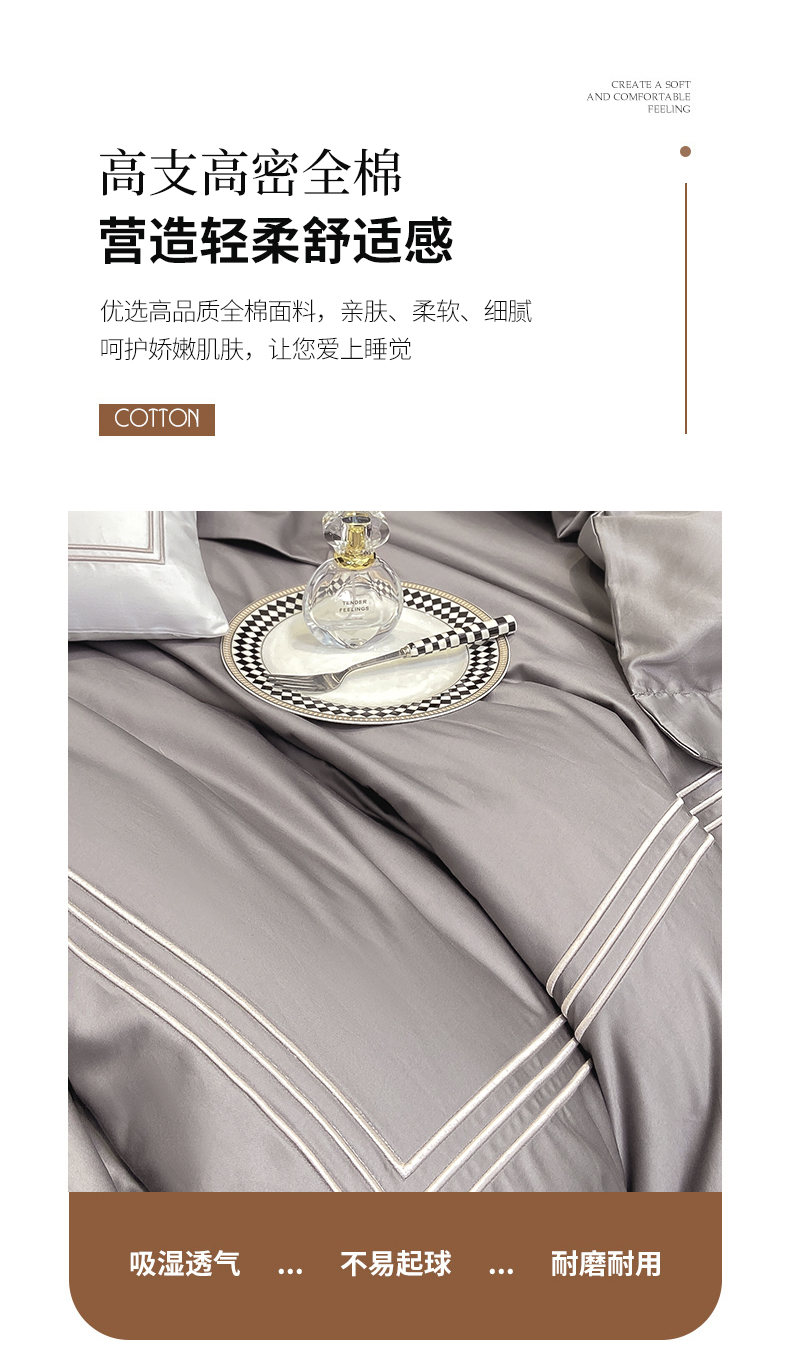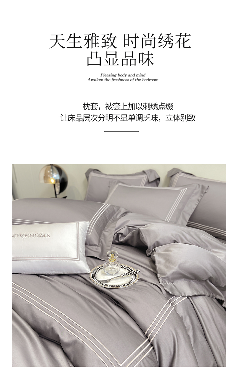 当前位置: 91家纺网 > 商品网购 > 床品套件 > 四件套 > 长绒棉四件套 > 家居1号家纺 2026新款100支新疆长绒棉纯棉四件套-爱丽丝 爱丽丝-高级灰