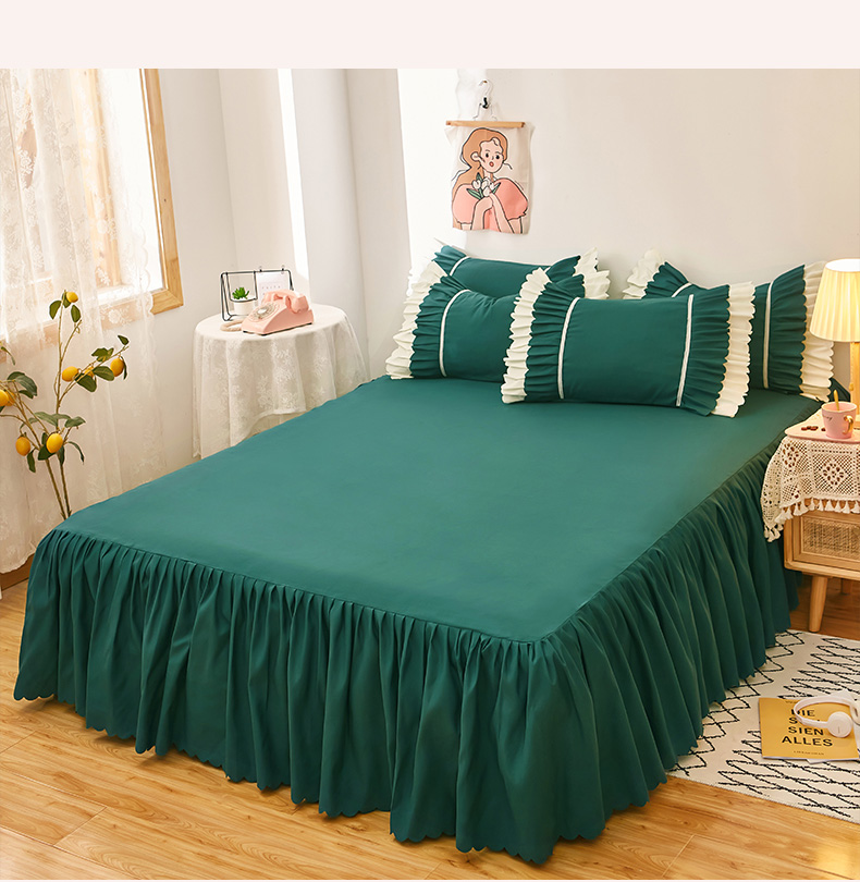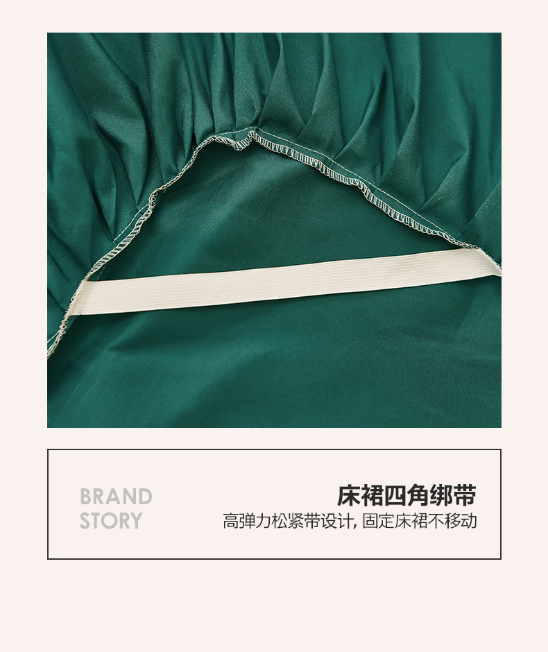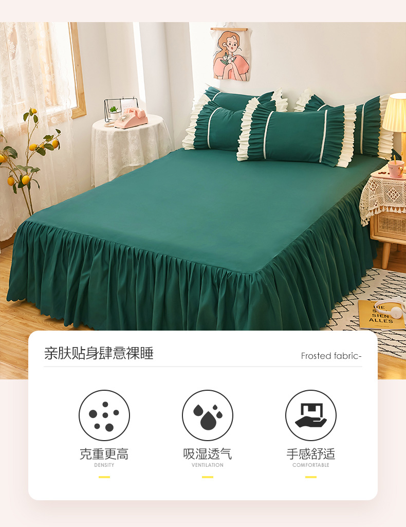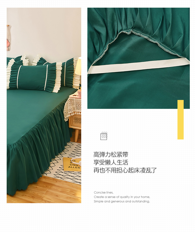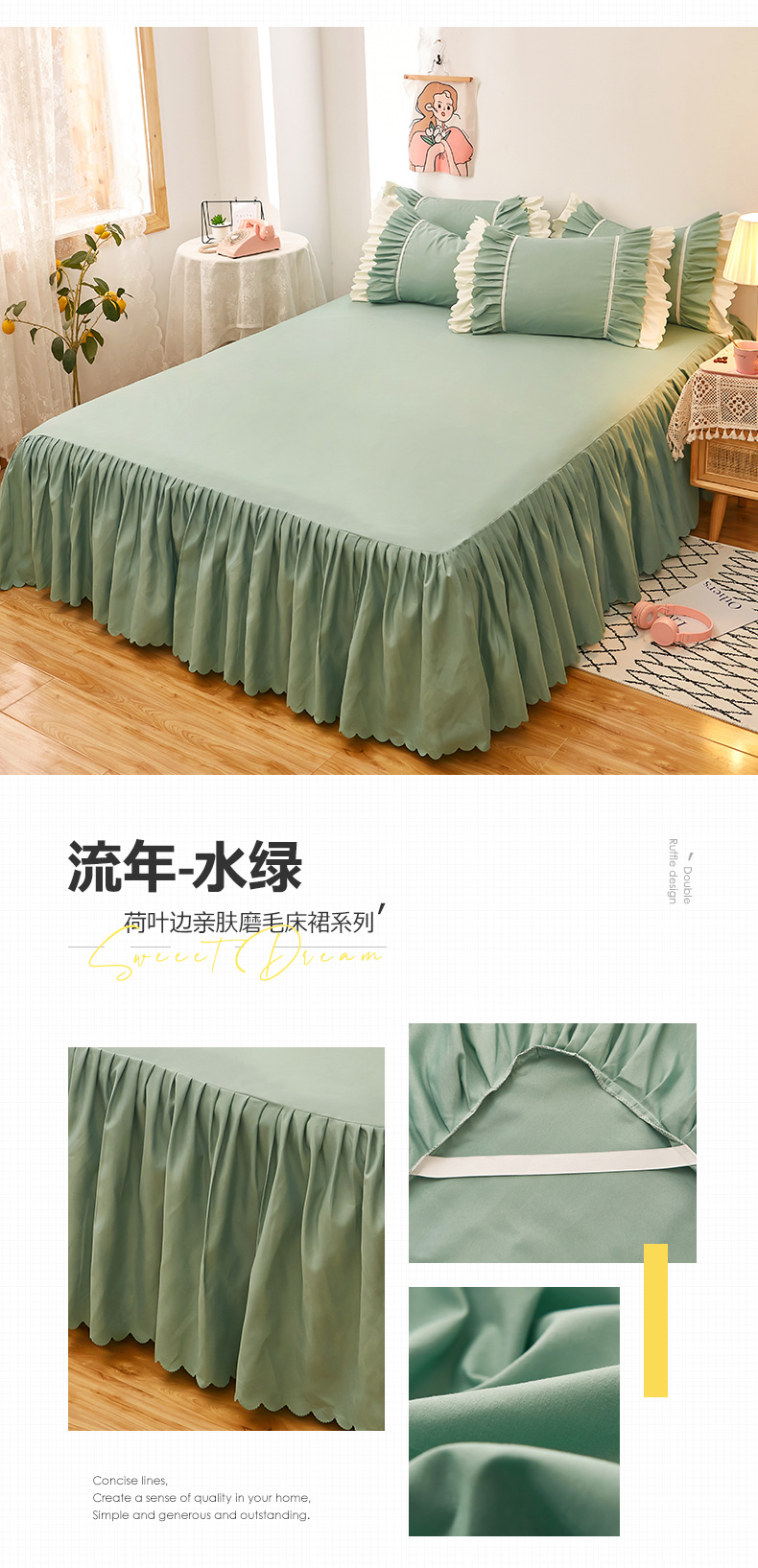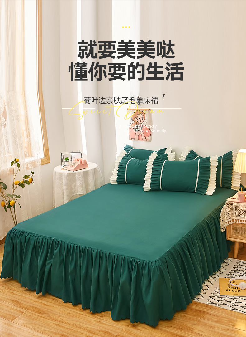 商品名称:沐珩家纺 2026新款荷叶边亲肤磨毛单床裙—流年系列 流年-墨绿