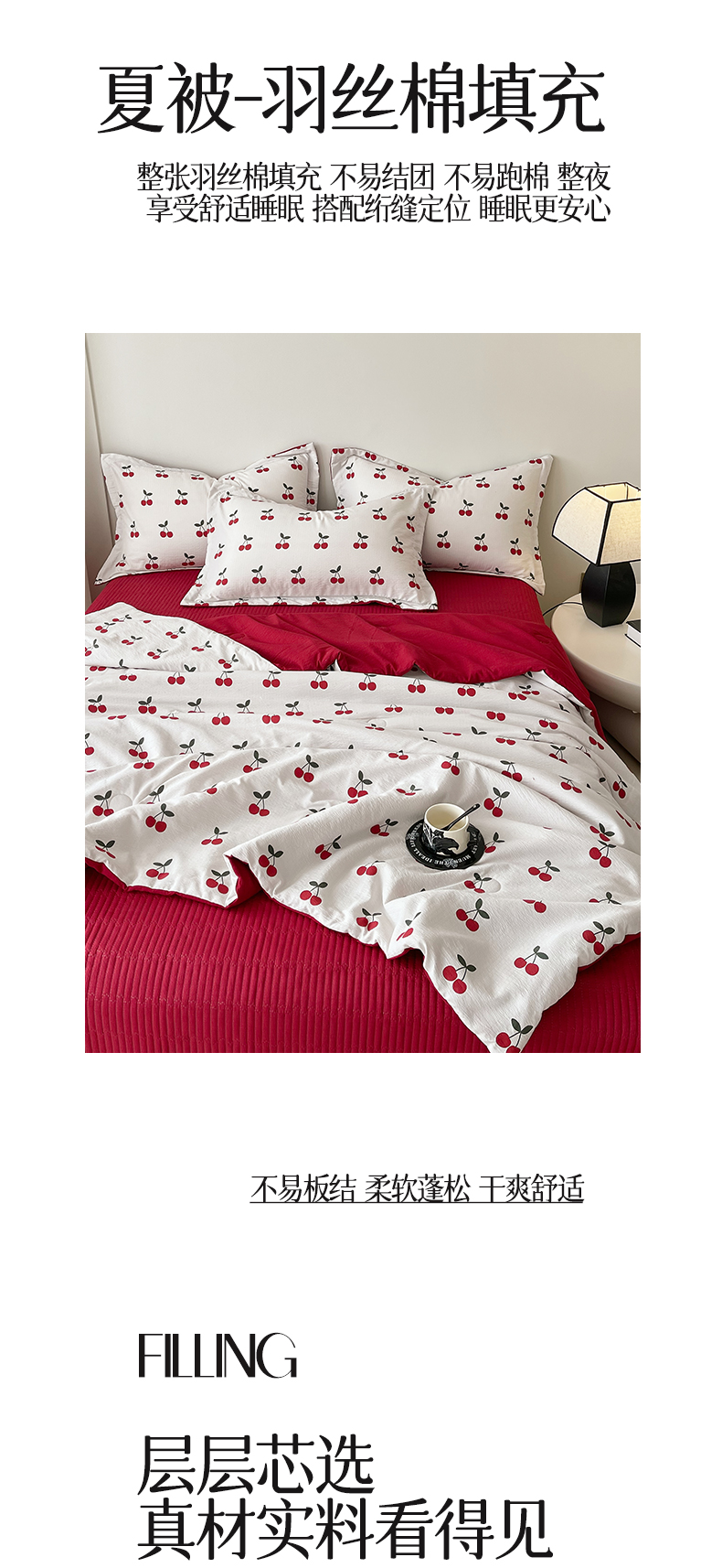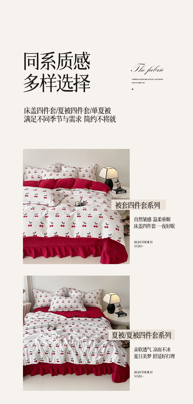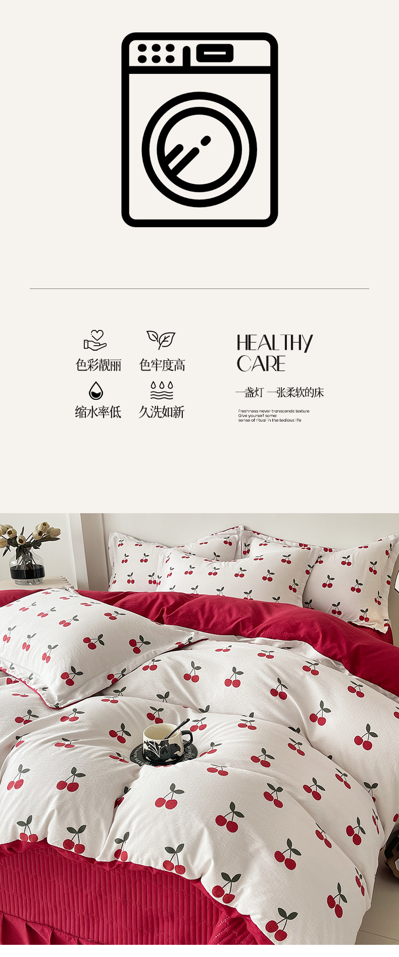 商品名称:麦田家纺 2026新款皱皱水洗棉床盖夏被夏凉被空调被四件套 樱桃蜜语