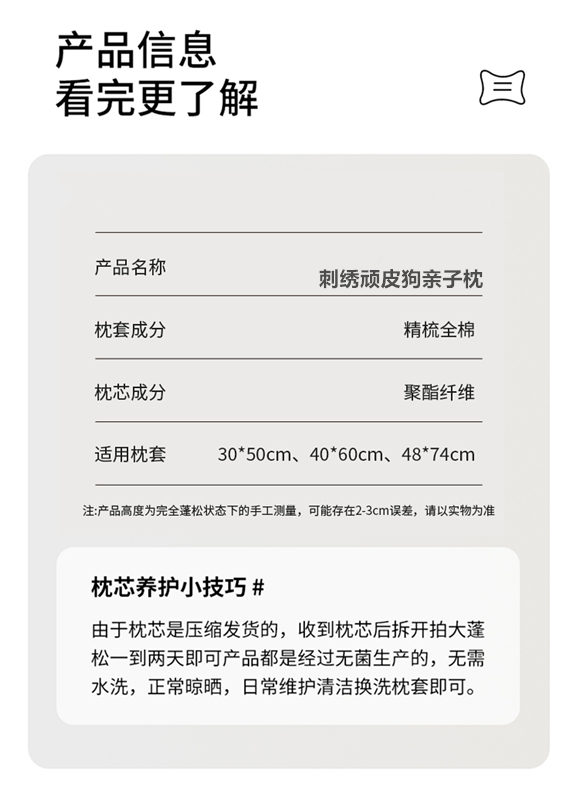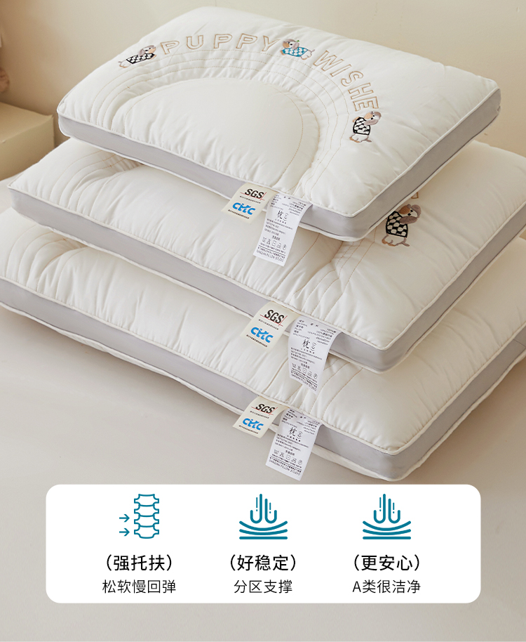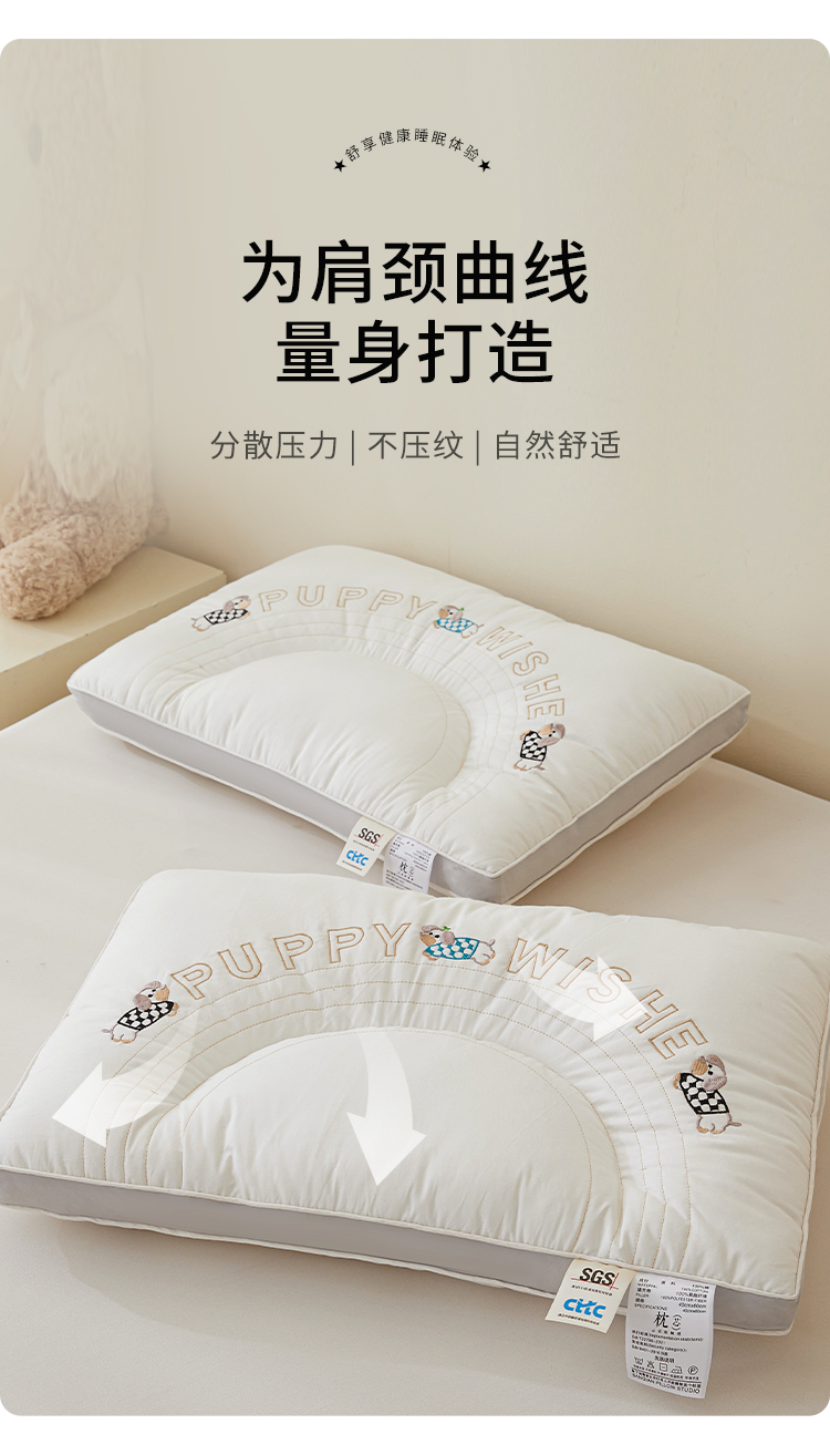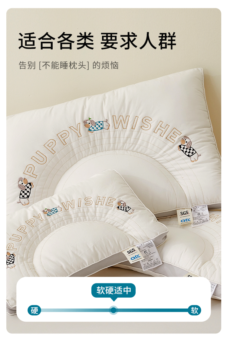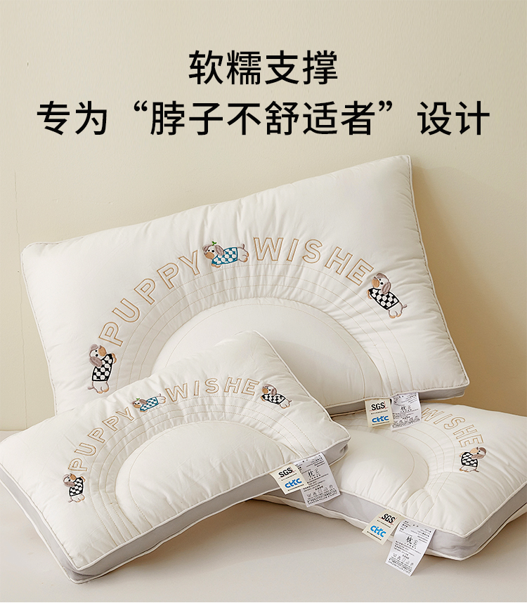 商品名称:(总)小桃姐家纺 2025新款刺绣顽皮狗亲子枕头枕芯