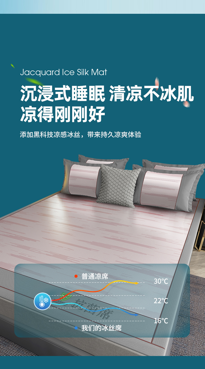 2023新款夏日冰点-冰藤双面席凉席藤席竹席冰丝席乳胶席,咖色,蓝色,绿色,香槟
