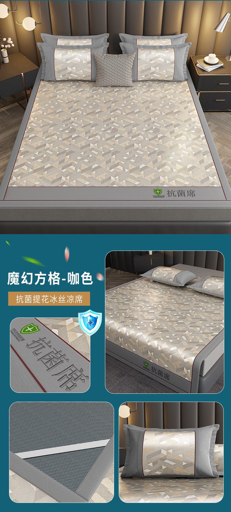 小牛席业 2026新款A加厚款-可机洗抗菌提花冰丝席 抗菌席-色织绿色