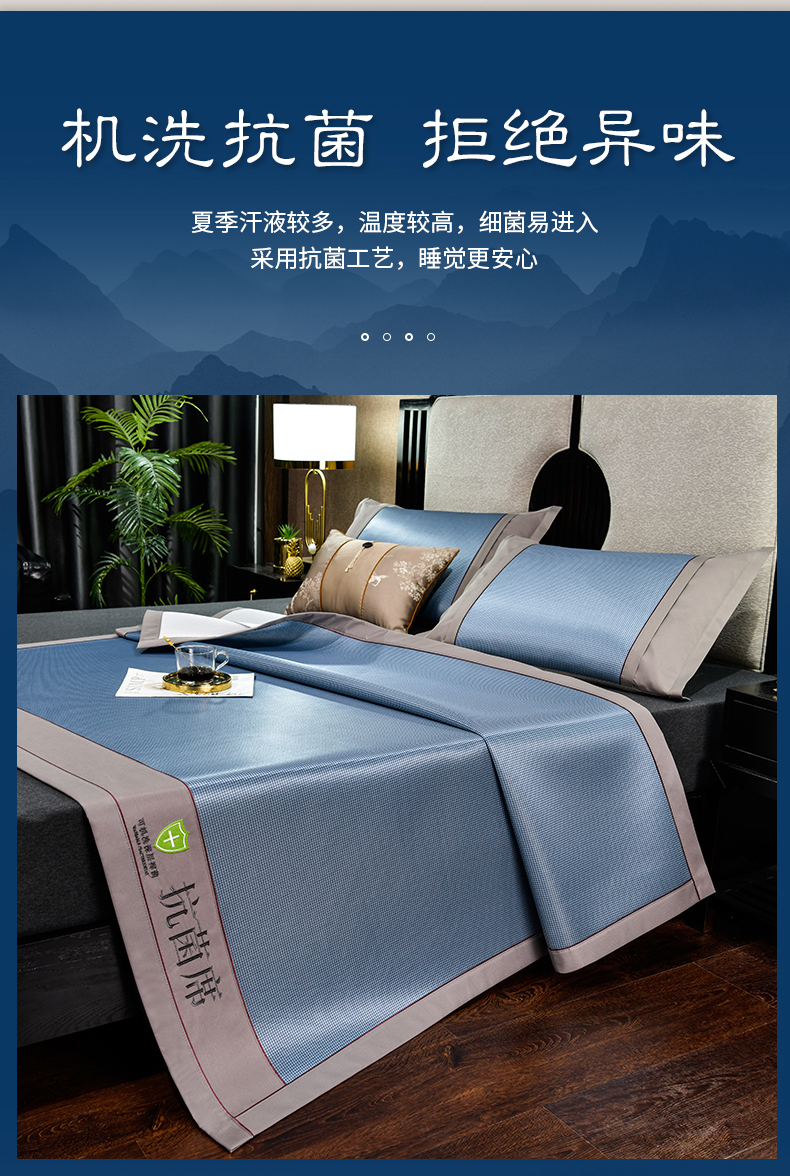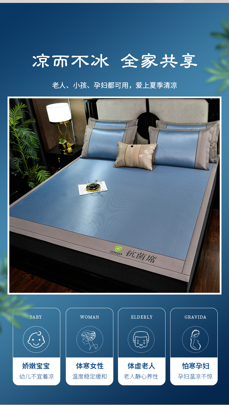 (总)2023新款超精密冰丝席-小斜纹系列-床笠款藤席凉席竹席,粉色,蓝色,绿色,银灰