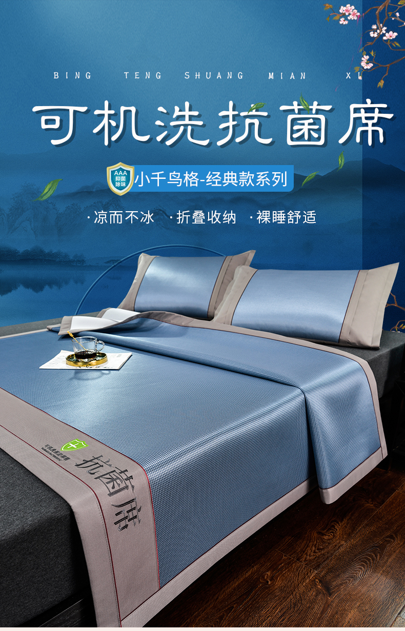 商品名称:小牛席业 2026新款小千鸟格-经典款抗菌席(轻奢风) 蓝色