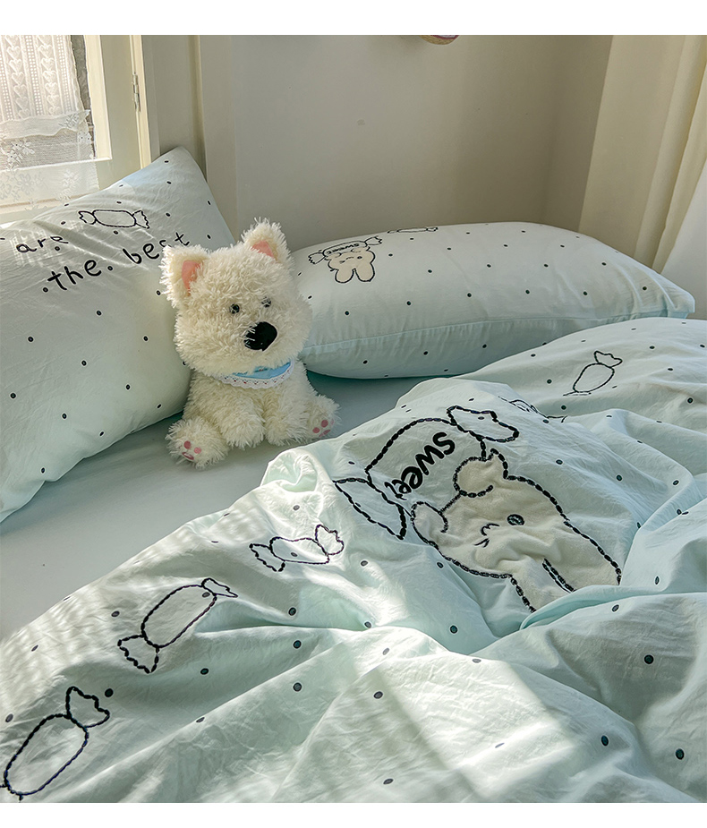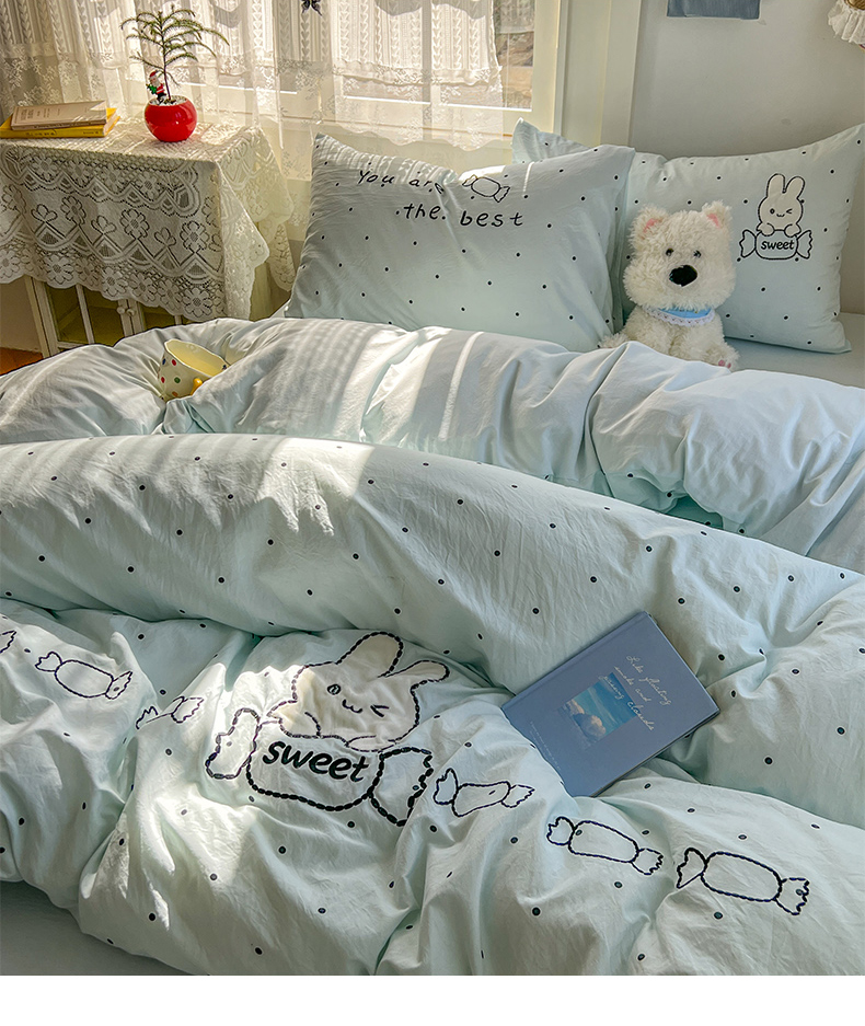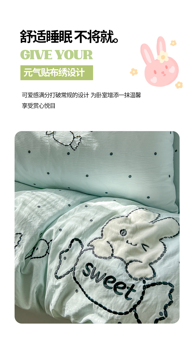 (总)贝凯瑞 2026新款仿棉木棉水洗棉绣花ins小清新床裙床单款四件套-糖果兔系列