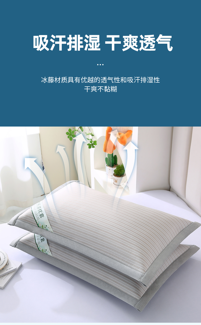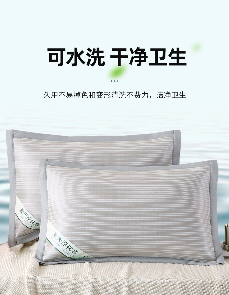 商品名称:小牛席业 2026新款经典条纹-冰丝夏凉枕套 香槟