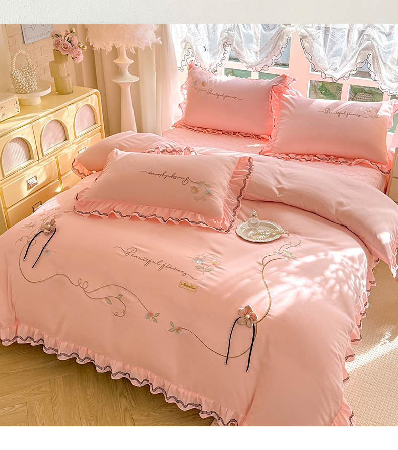商品名称:漫布云家纺 2026新款韩版多功能水洗棉公主风床盖款四件套-花颜系列 花颜-樱花粉
