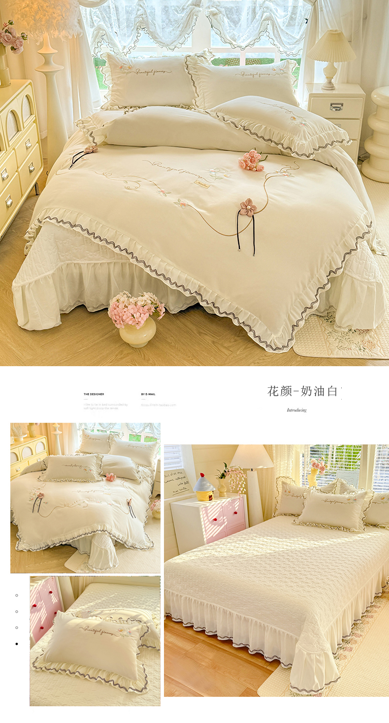 (总)漫布云 2026新款230g高克重韩版立体盘花牛奶蚕丝绒绣花四件套床裙款被套-洛丽塔系列,洛丽塔-嫩黄 ,洛丽塔-香芋紫,洛丽塔-珍珠粉, 洛丽塔-婴儿蓝