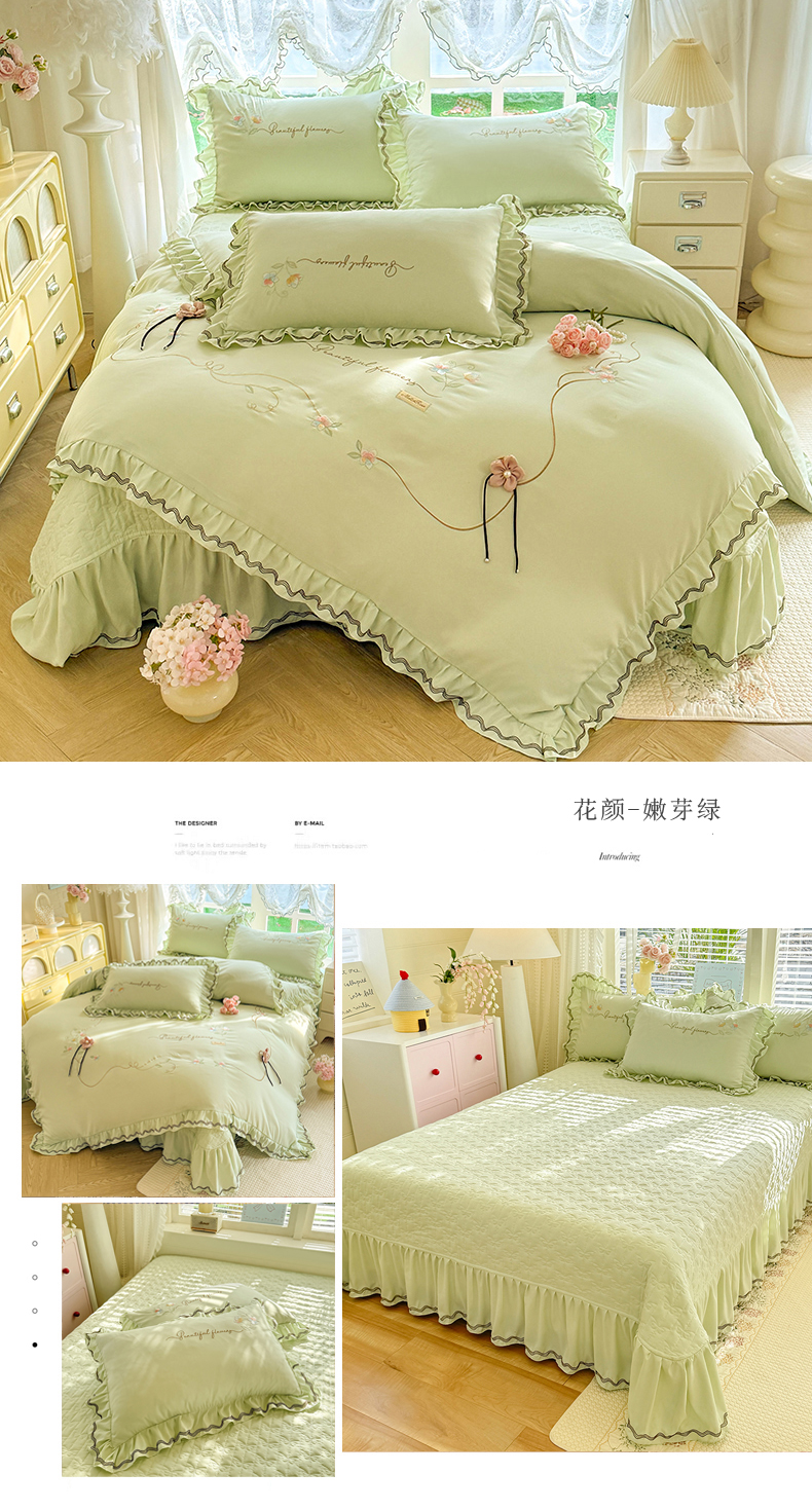 (总)(总)专柜品质苏米娜家纺2026春夏韩版法式公主风水洗棉床盖款多功能二合一被套 夏被床盖四件套--花颜系列,花颜-樱花粉 ,花颜-梦幻蓝 ,花颜-奶油白 ,花颜-嫩芽绿 ,花颜-香芋紫
