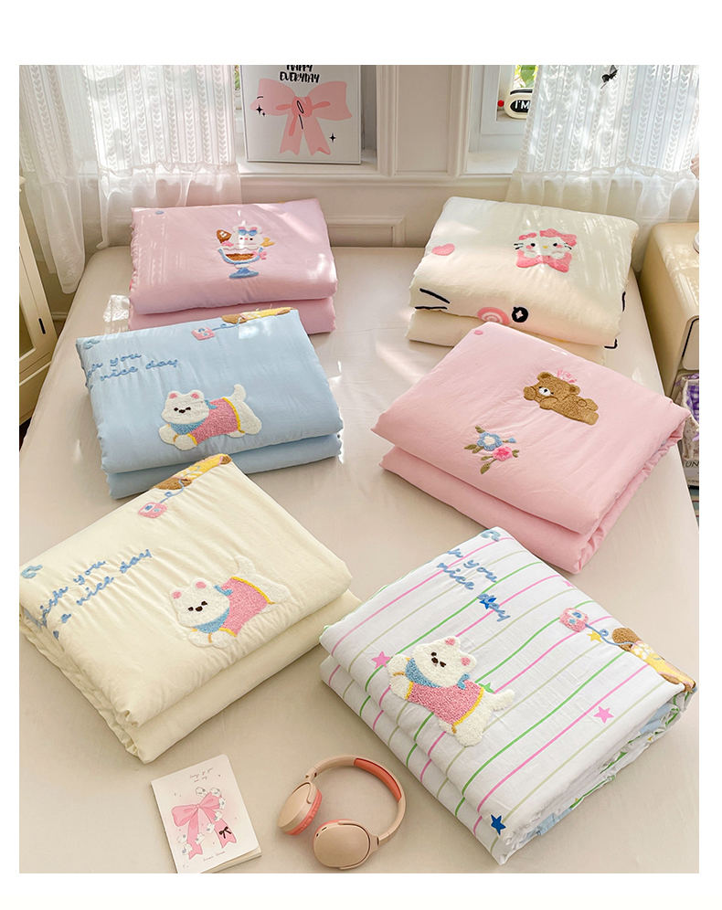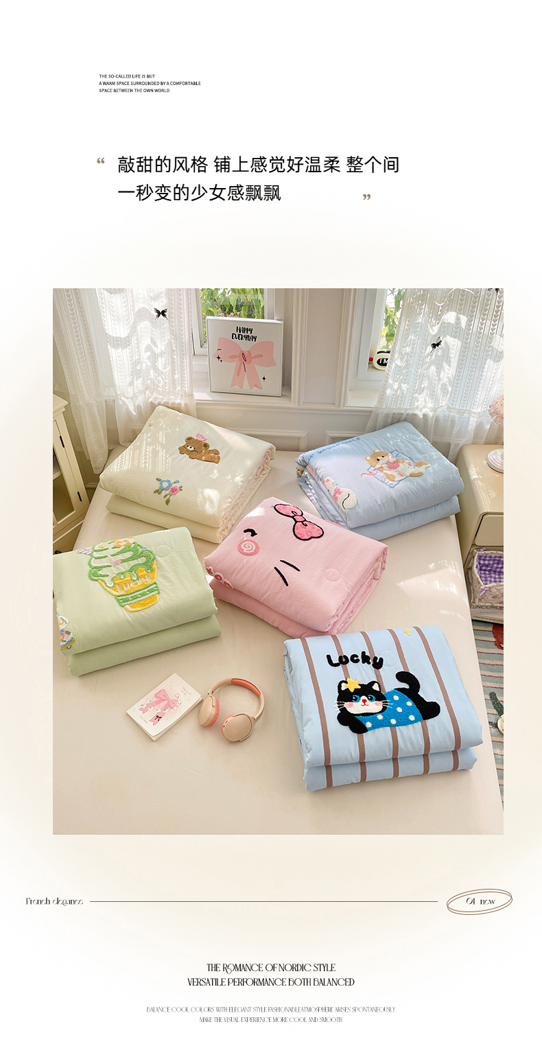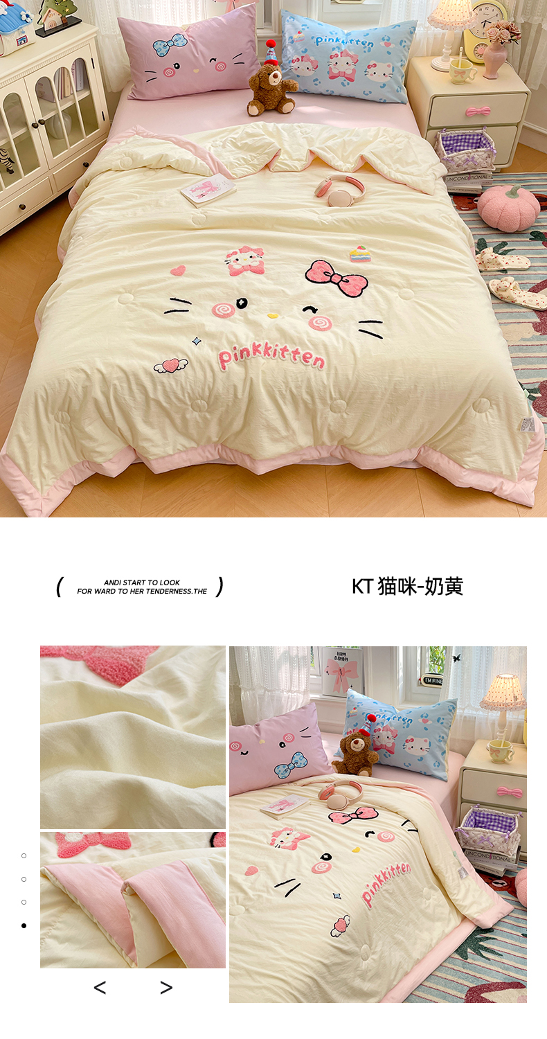 (总)康纳利 2026新款加厚水洗云朵棉大版毛巾绣夏凉被空调被印花卡通夏被四件套,KT 猫咪-奶黄,动物趴-蓝,喵趣派对,花田萌宠-粉,动物趴-条纹,动物趴-奶黄,花田萌宠-奶黄,蛋糕碰碰会,抹茶冰激凌,晚安猫咪,KT 猫咪-粉,组合(仅参考)
