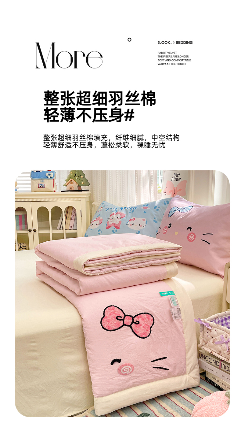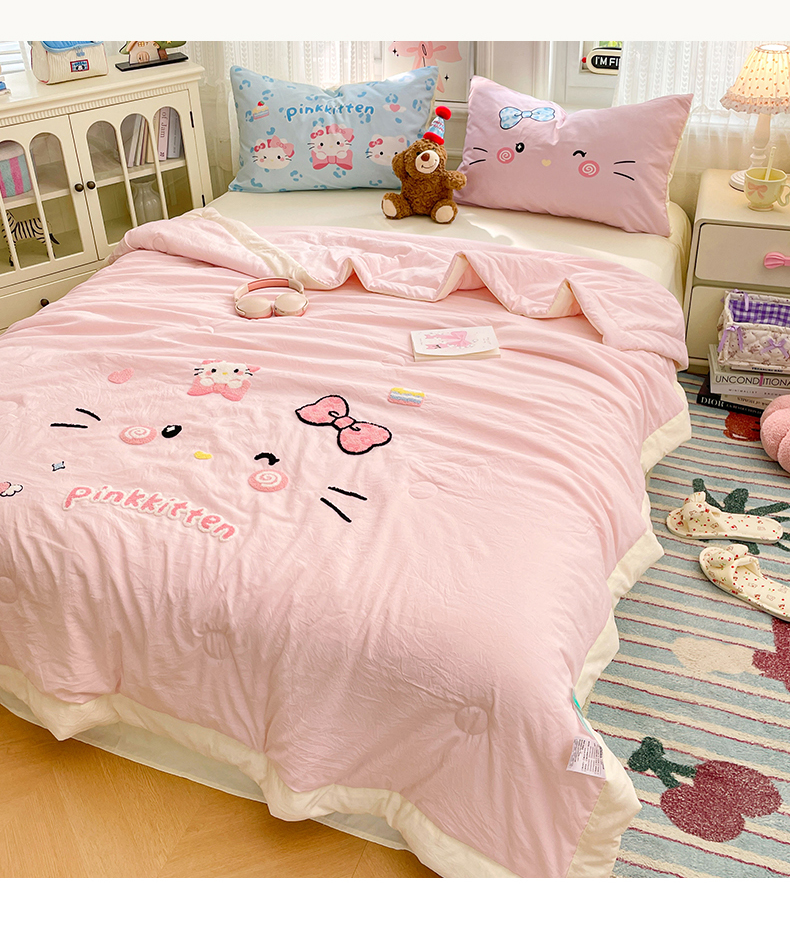 商品名称:康纳利 2026新款加厚水洗云朵棉大版毛巾绣夏凉被空调被印花卡通夏被四件套 KT 猫咪-粉