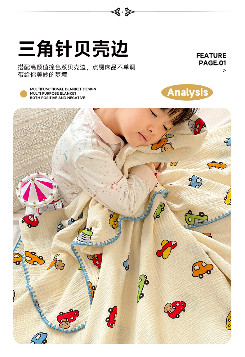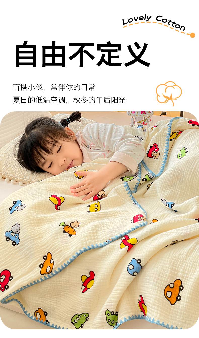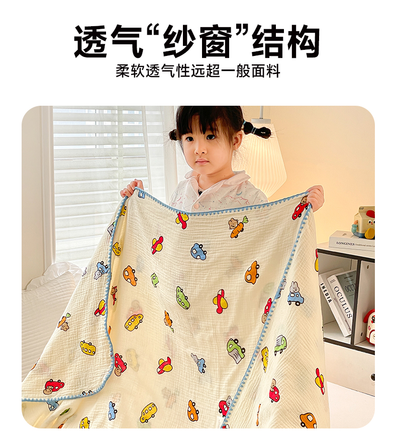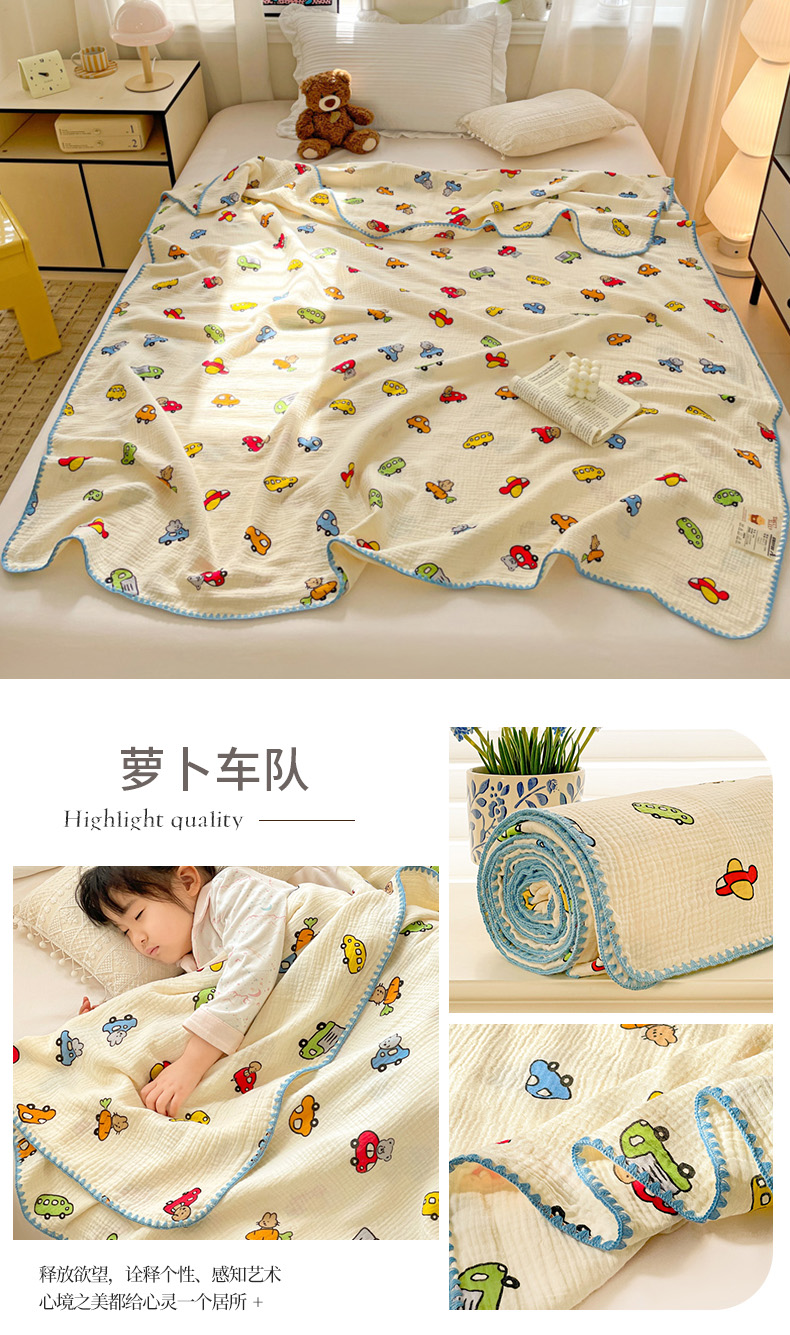商品名称:优被业 2026新款A类全棉双层纱布毯夏被毯盖毯婴儿包被 萝卜车队