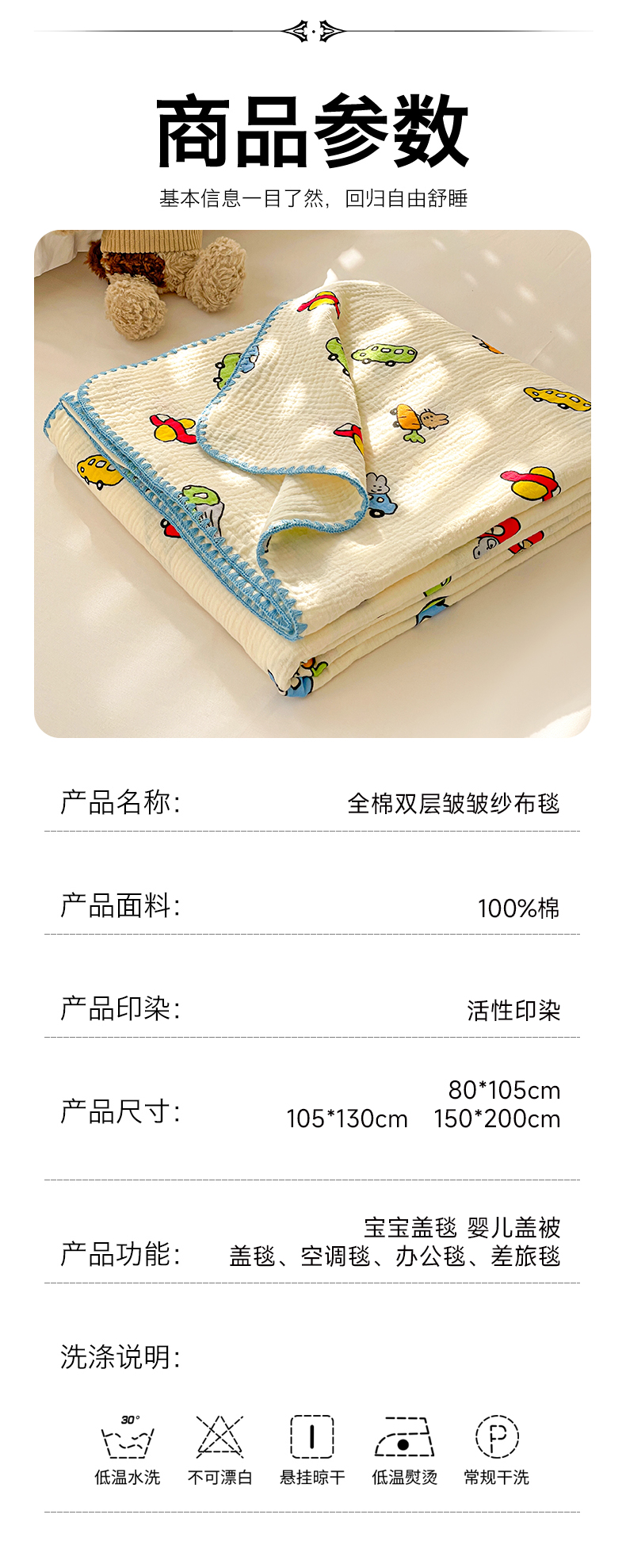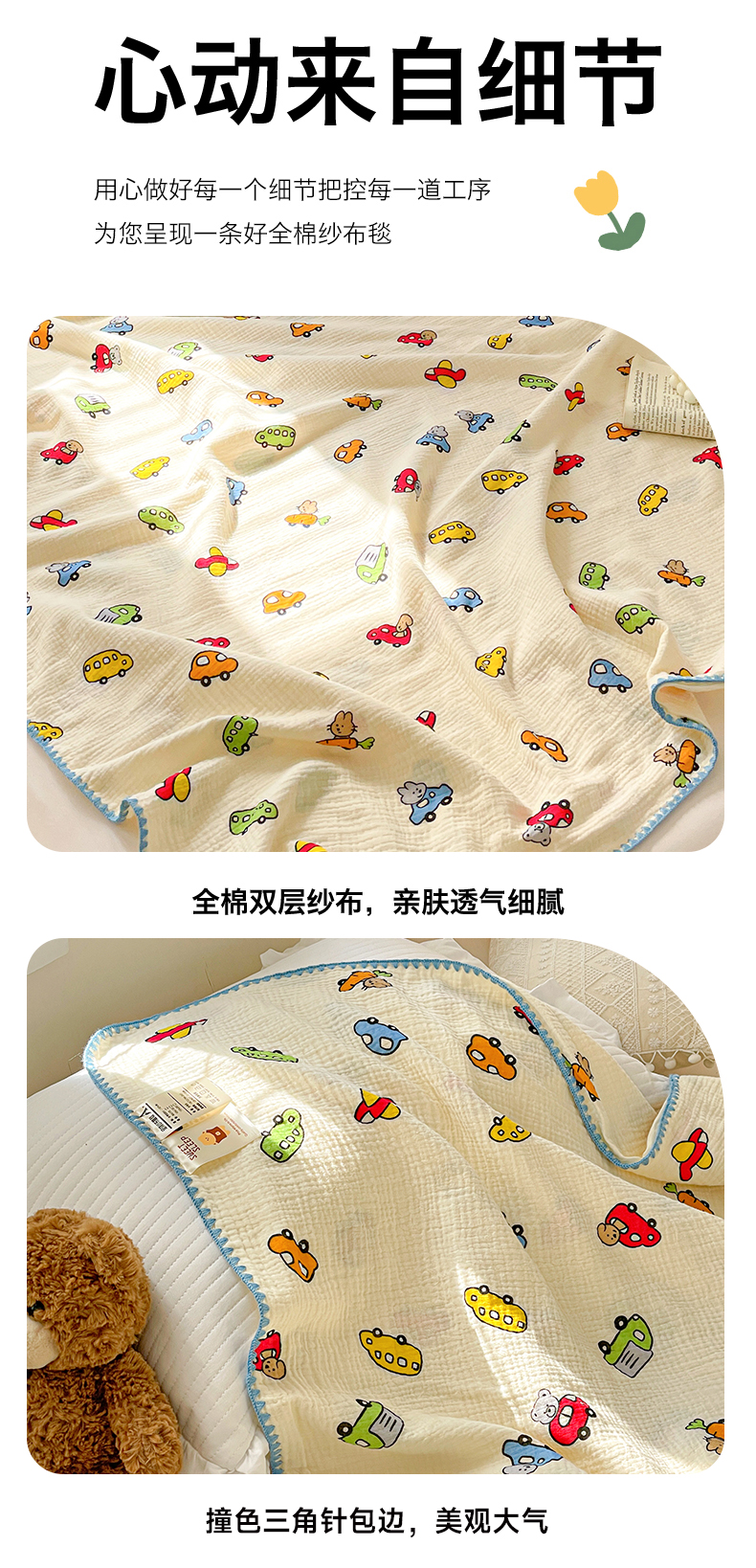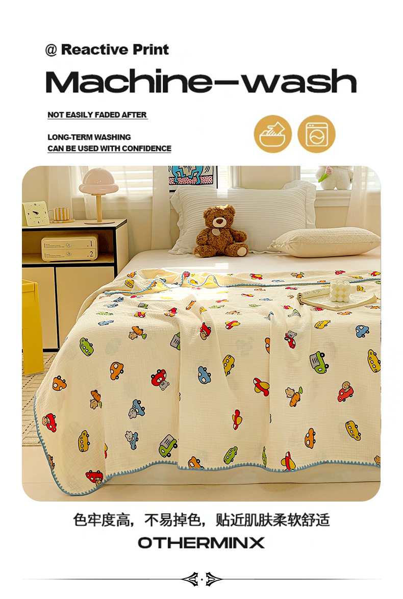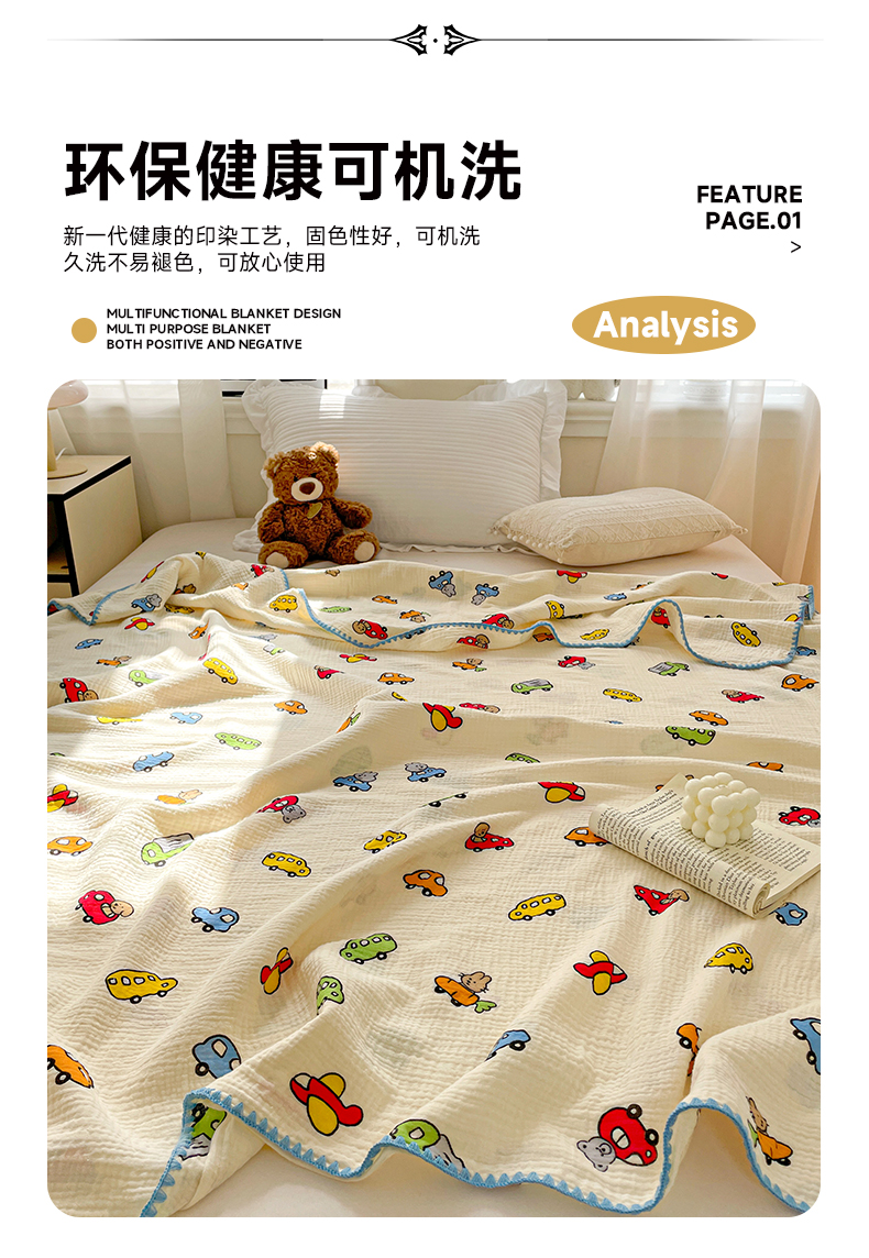 商品名称:优被业 2026新款A类全棉双层纱布毯夏被毯盖毯婴儿包被 萝卜车队
