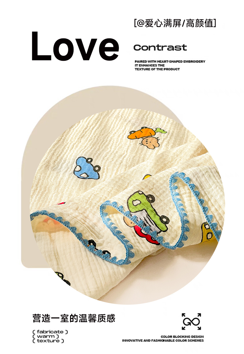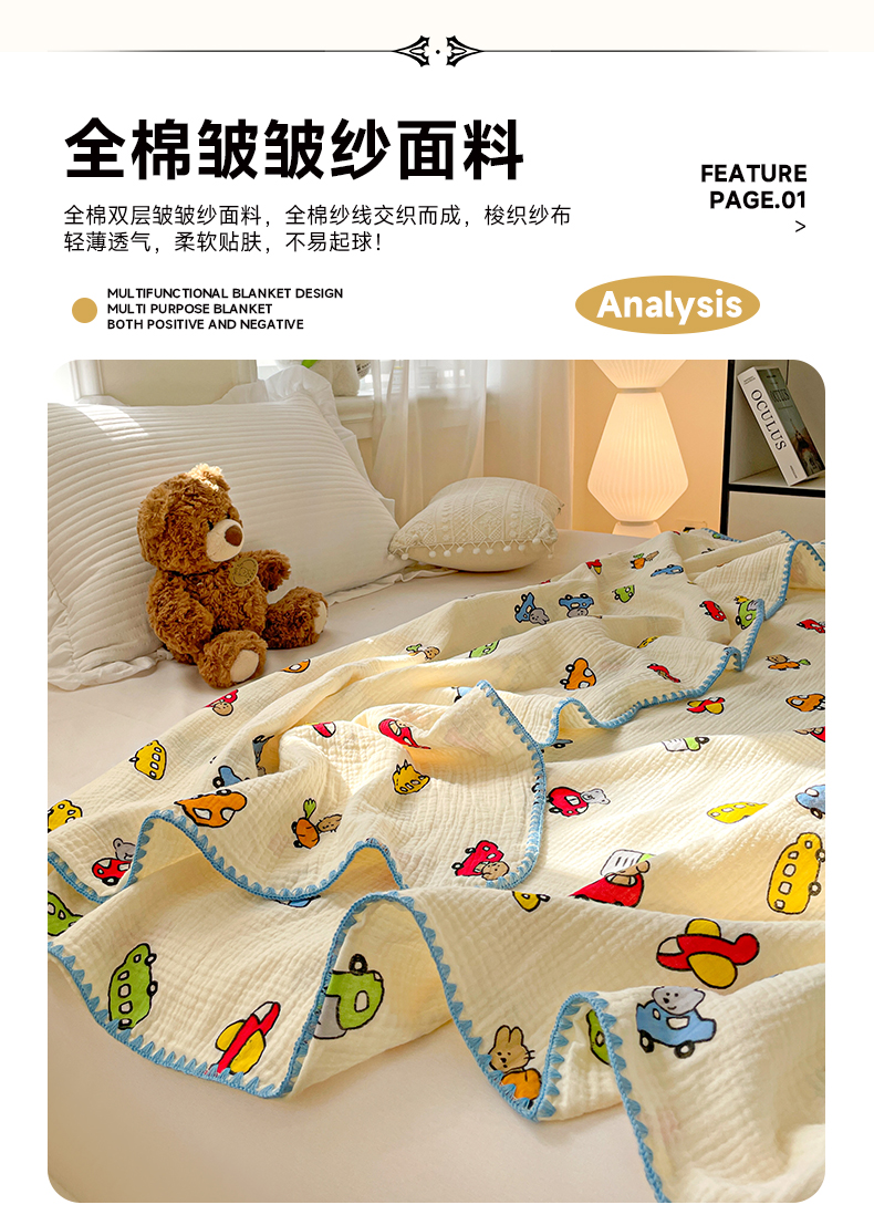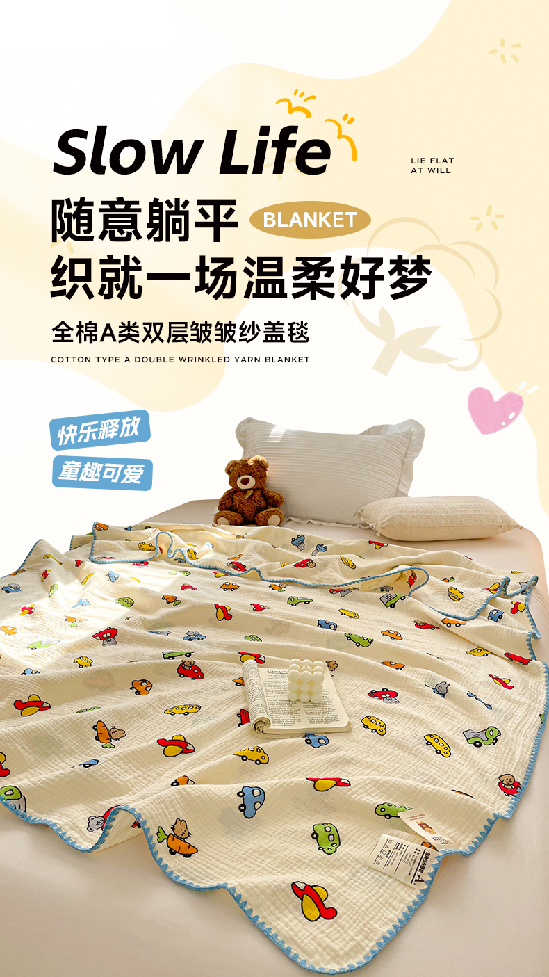 (总)优被业 2025新款全棉双层纱皱皱纱夏被,南瓜熊猫,宠物乐园,小爱心,爱心熊,花语,花馨,蘑菇小兔