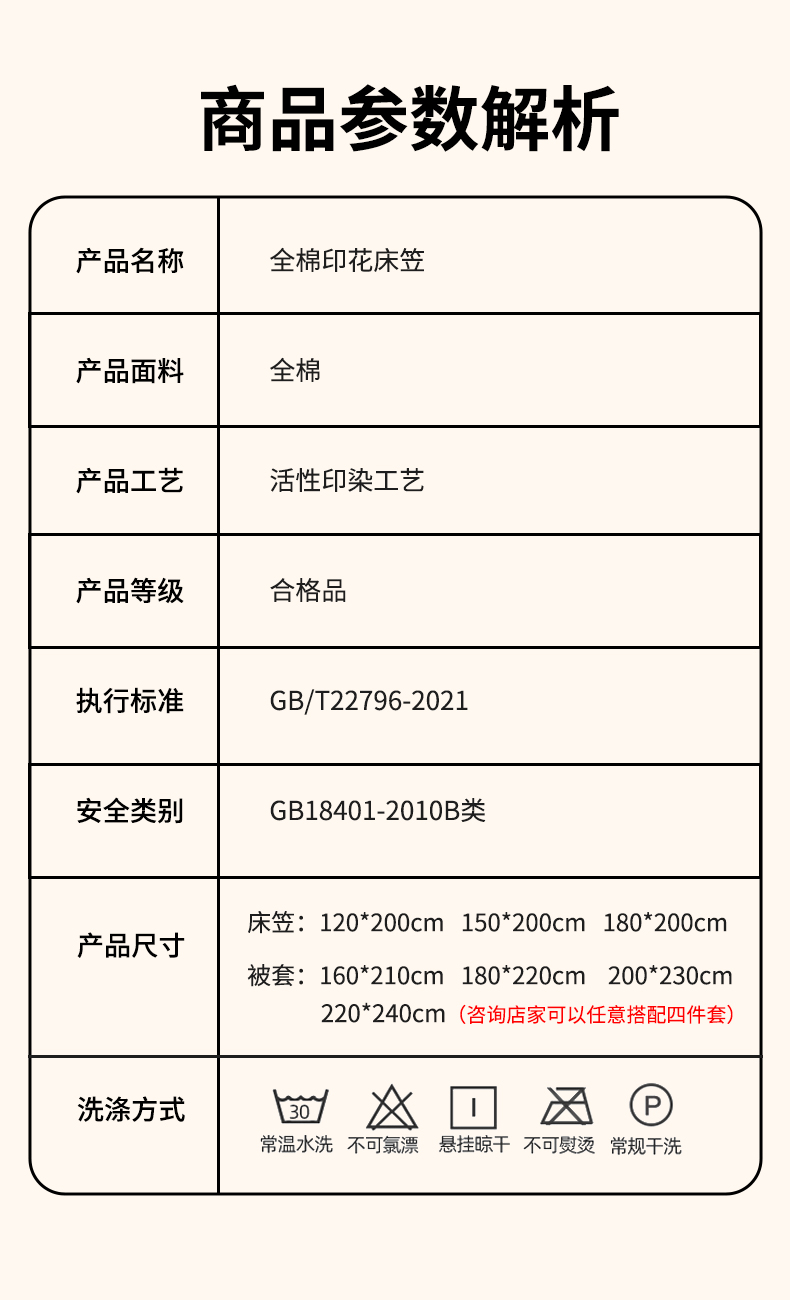 【加高床笠款】1.8四件套-单层被套220x240