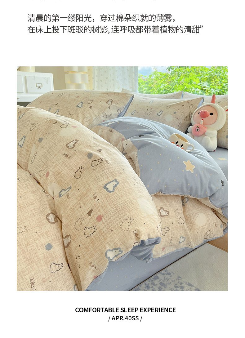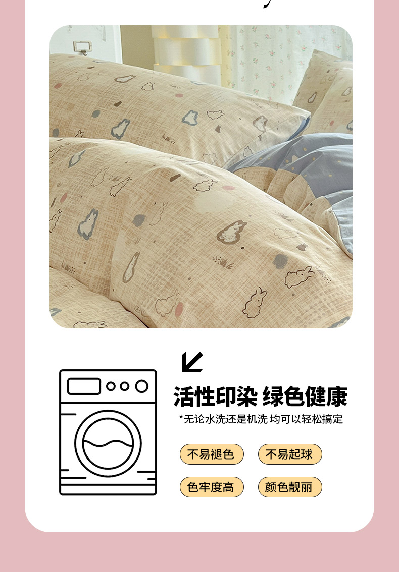 当前位置: 91家纺网 > 商品网购 > 床品套件 > 四件套 > 全棉普通四件套 > 晨希家居 2026新款全棉13070印花四件套(提供买家秀) 全棉-棉野云兔