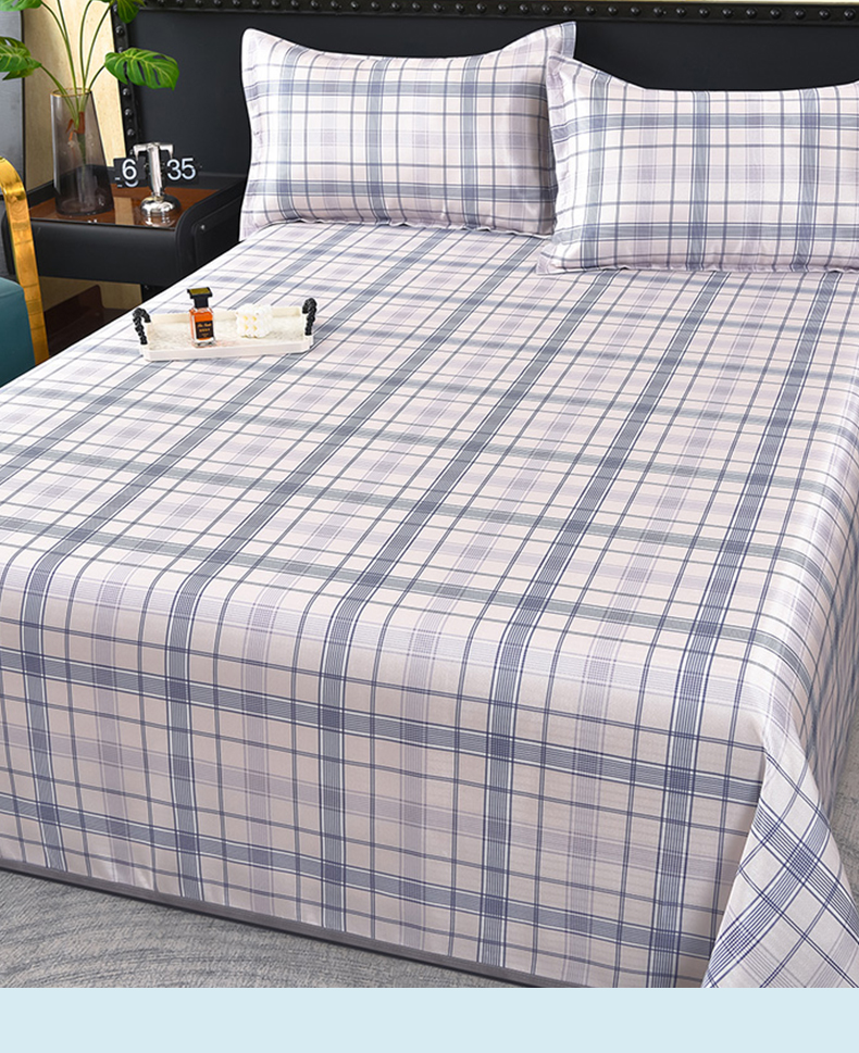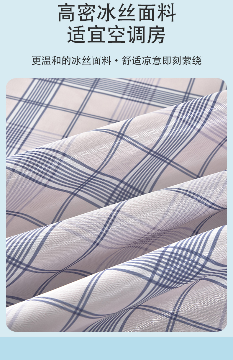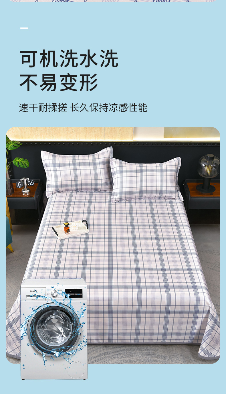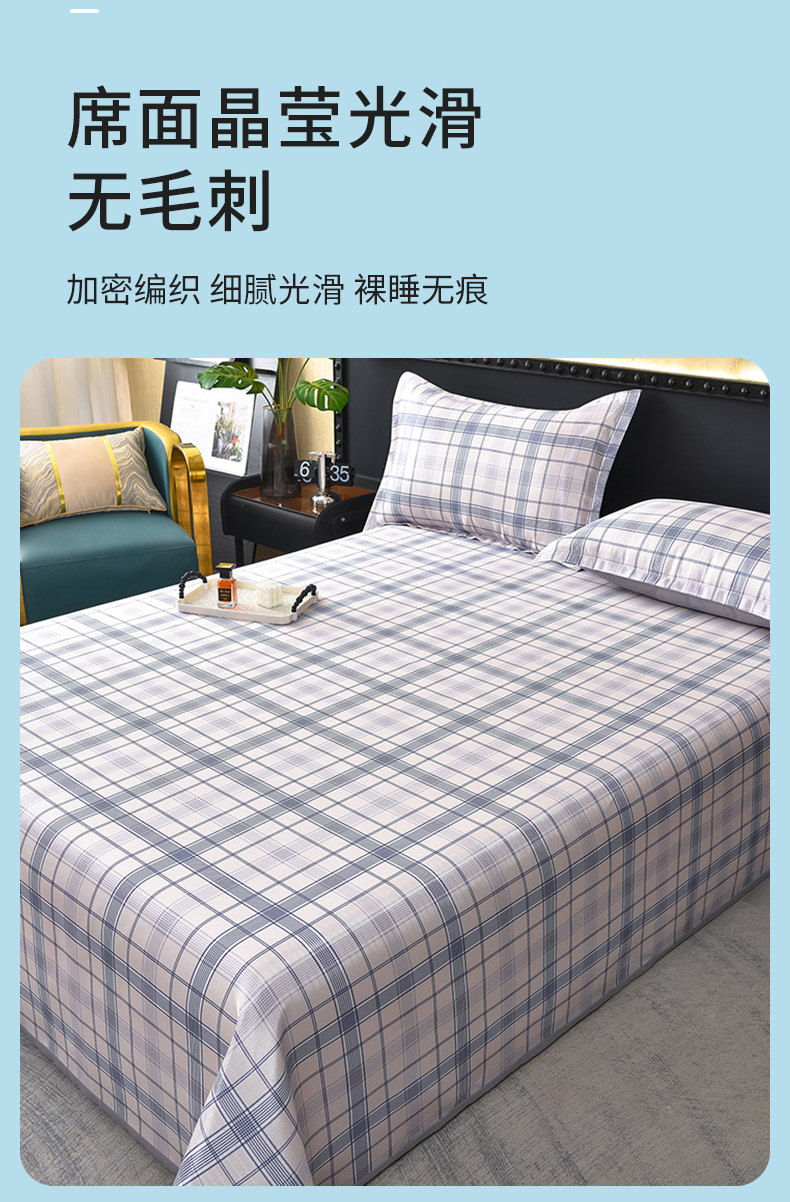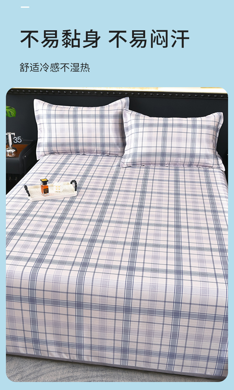商品名称:念家居 2026新款轻奢可机洗水洗床单款高密大版斜纹冰丝凉席三件套 蓝灰格纹
