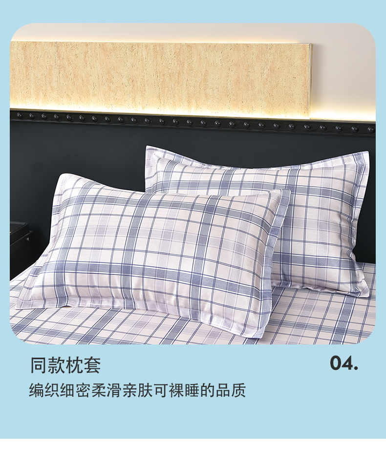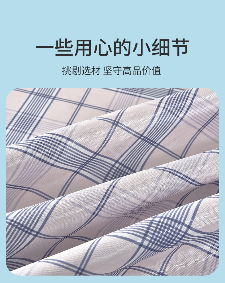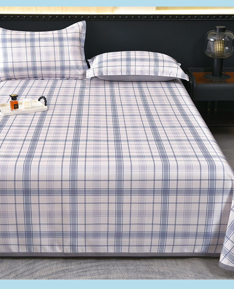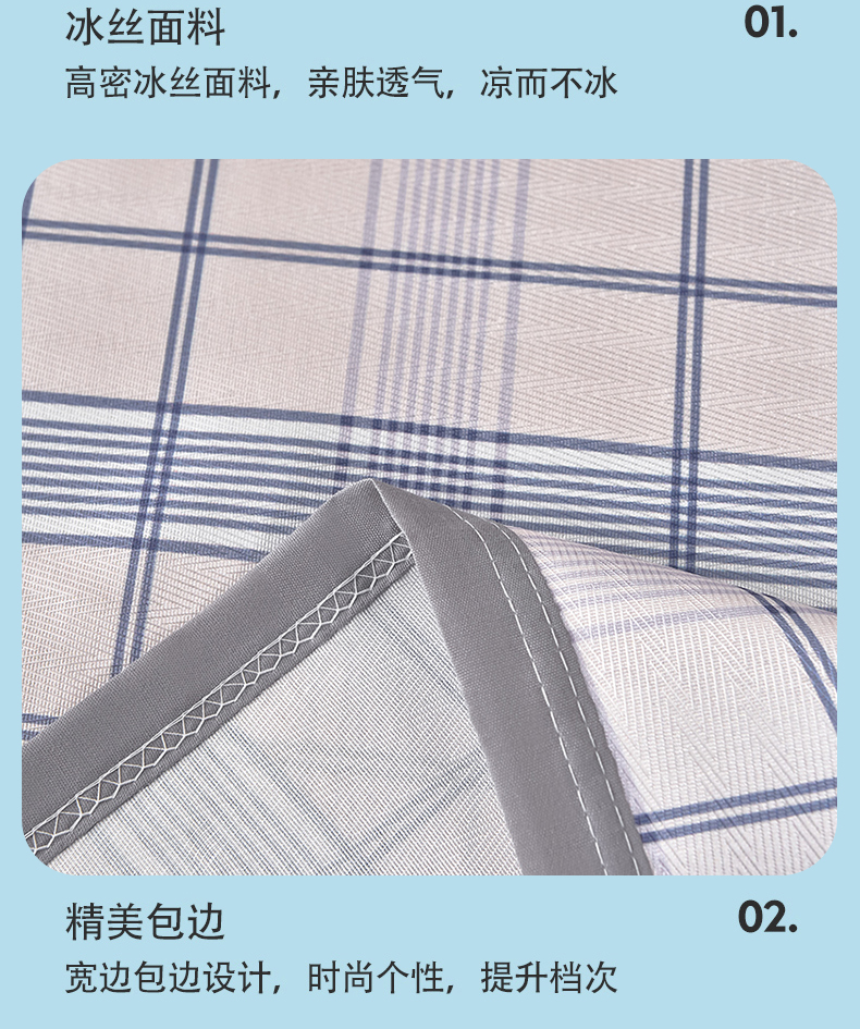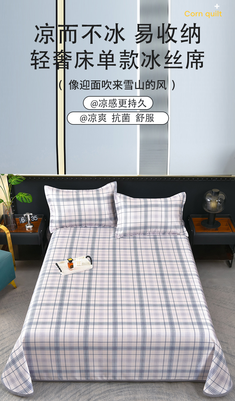 商品名称:念家居 2026新款轻奢可机洗水洗床单款高密大版斜纹冰丝凉席三件套 蓝灰格纹