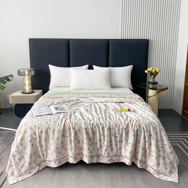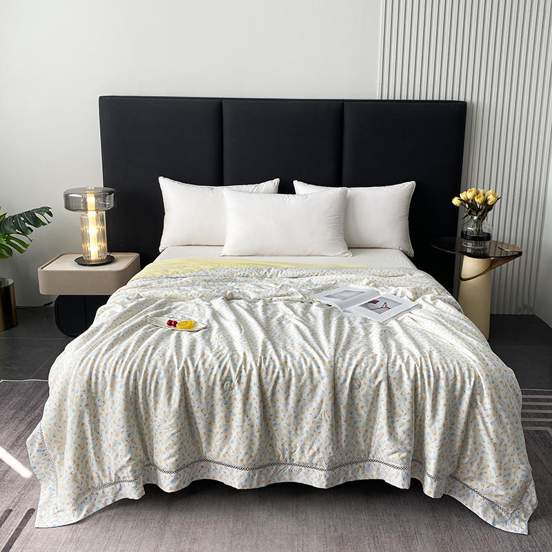 商品名称:太阳羽家纺 2026新款铂金莱赛尔天丝印花夏凉被镂空花边空调被夏被 叶叶情丝