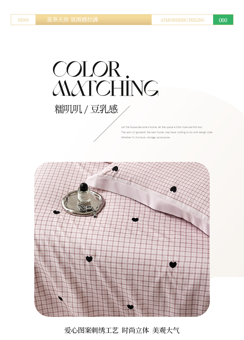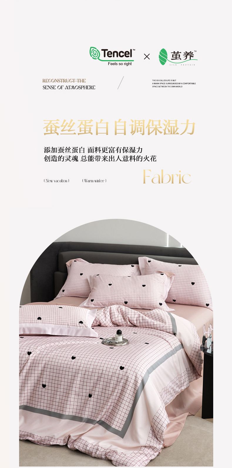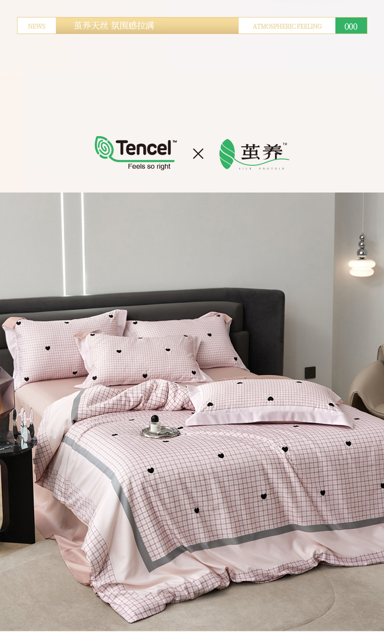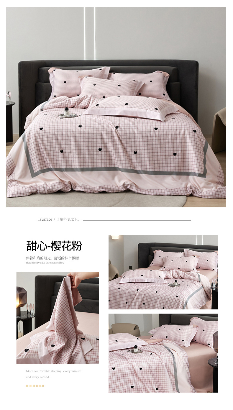 商品名称:金奇达家纺 2026新款茧养天丝棉四件套-甜心 甜心-樱花粉