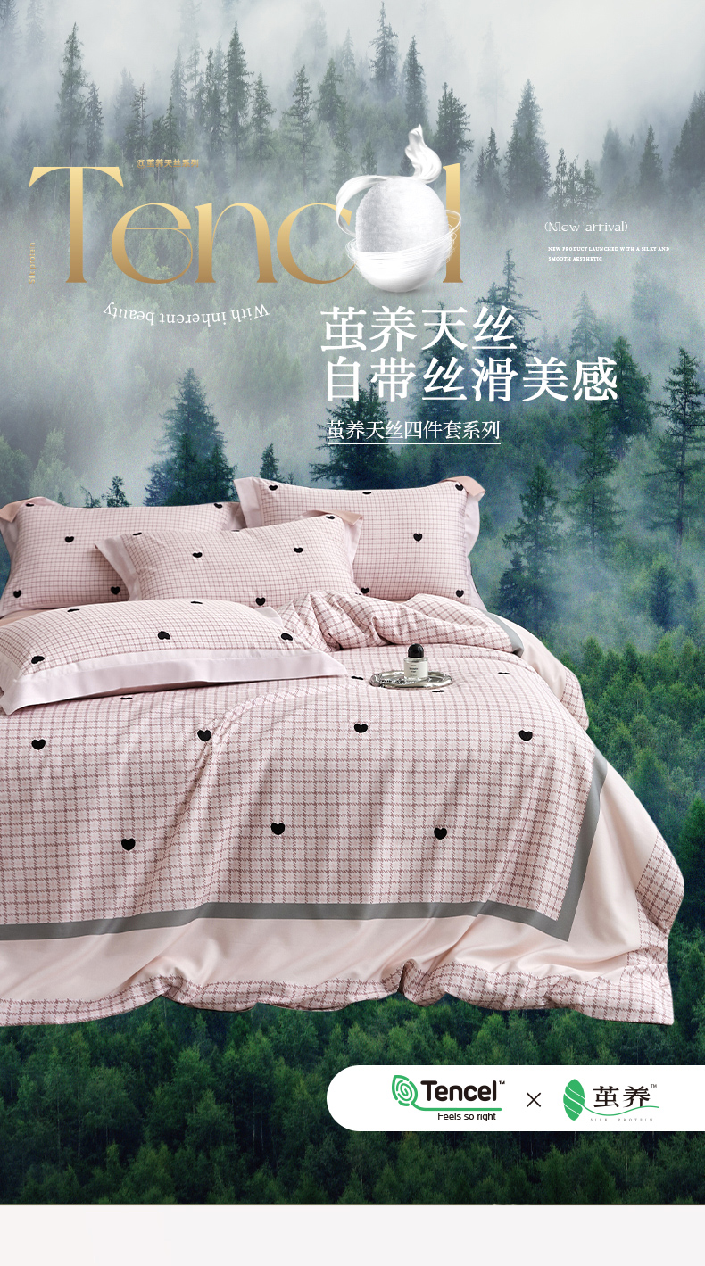 金奇达家纺 2026新款茧养天丝棉四件套-甜心 甜心-樱花粉
