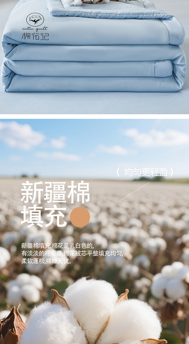 爱屋及屋 2026新款撞色双拼新疆棉花夏被空调被夏凉被 单拼-天蓝