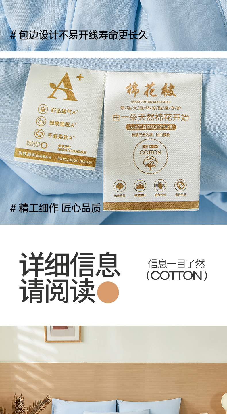 (总)爱屋及屋 2025新款原棉新疆棉花被冬被春秋被家用学生宿舍被子空调被芯,原棉-白,原棉-灰,原棉-蓝