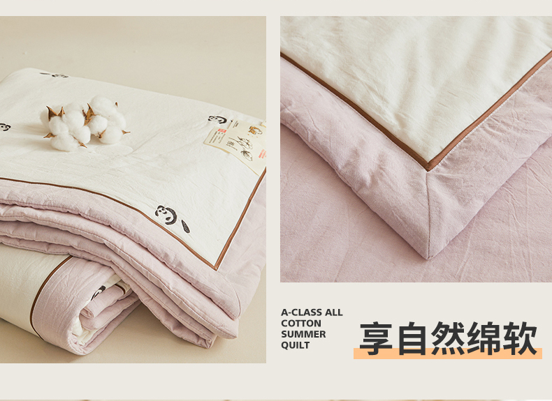 商品名称:仁凯家纺 2026新款A类100%棉花刺绣款手包边夏被夏凉被空调被 熊博士 奶白拼雾紫