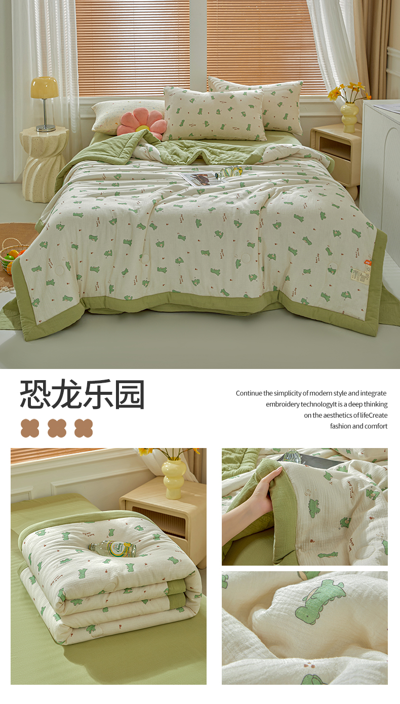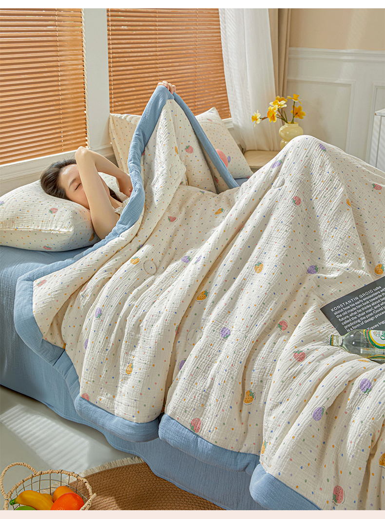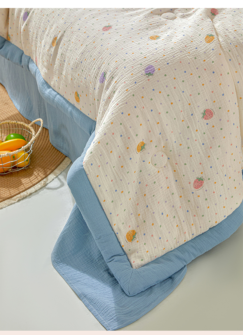 (总)恬思语家纺 2026春夏全棉双层纱棉花夏被空调被夏凉被四件套贝壳边系列,Ш櫻漫语,彩星芒,春晓-粉,春晓-绿,粉粉猫,花从兔-紫,咖啡狗,蓝汐-灰,南瓜派对,浅花町,阳光小马,云絮花-蓝,组合图仅供参考不可下单