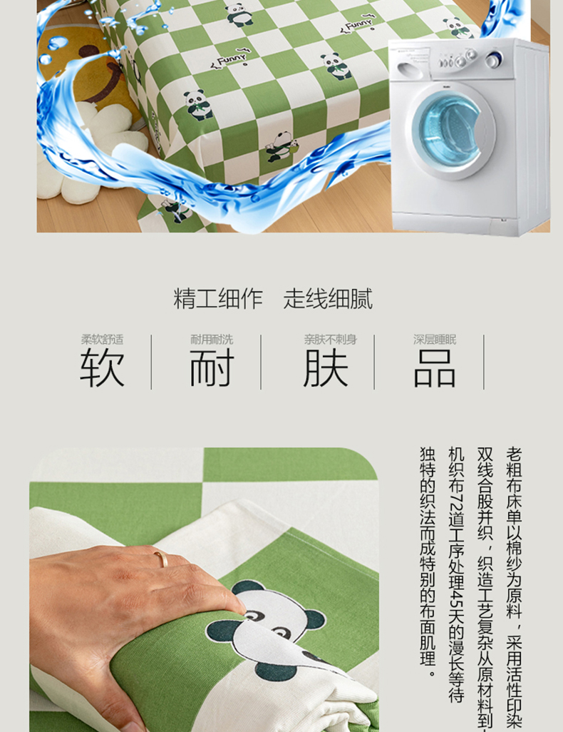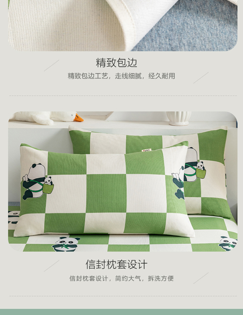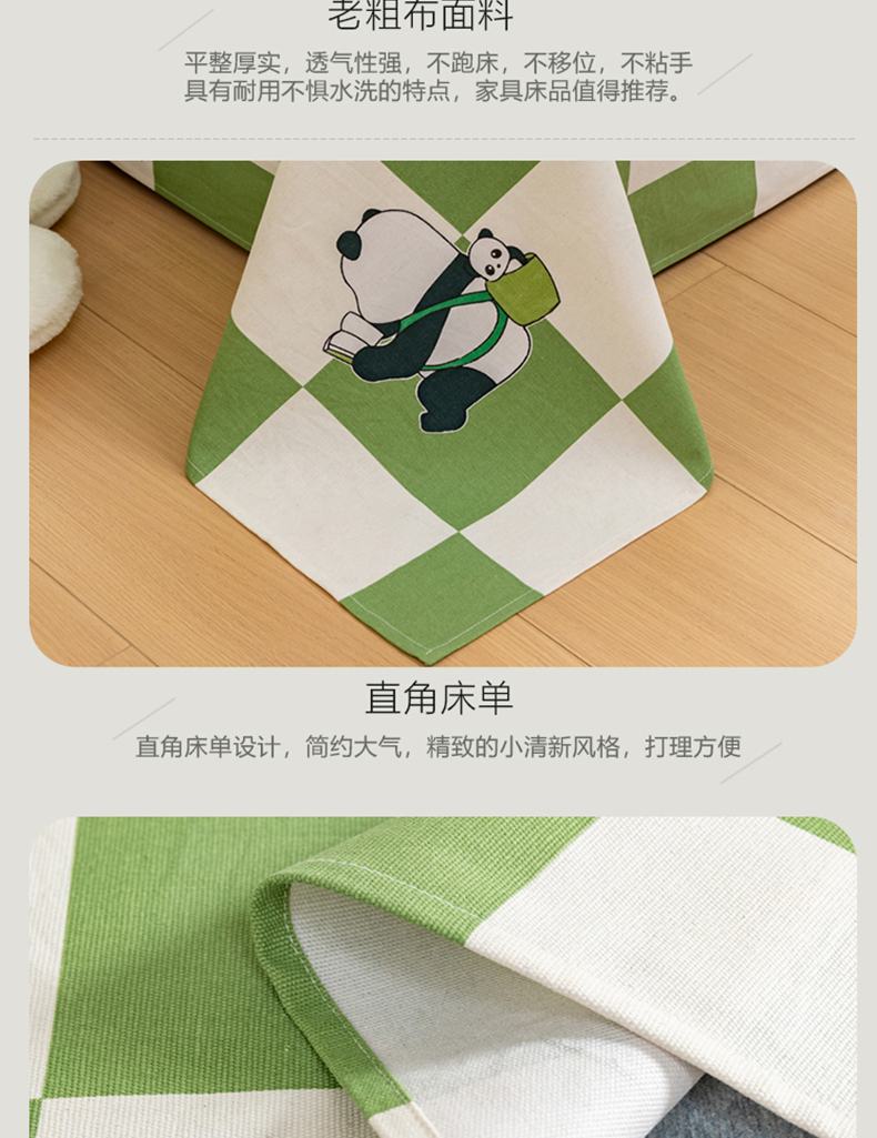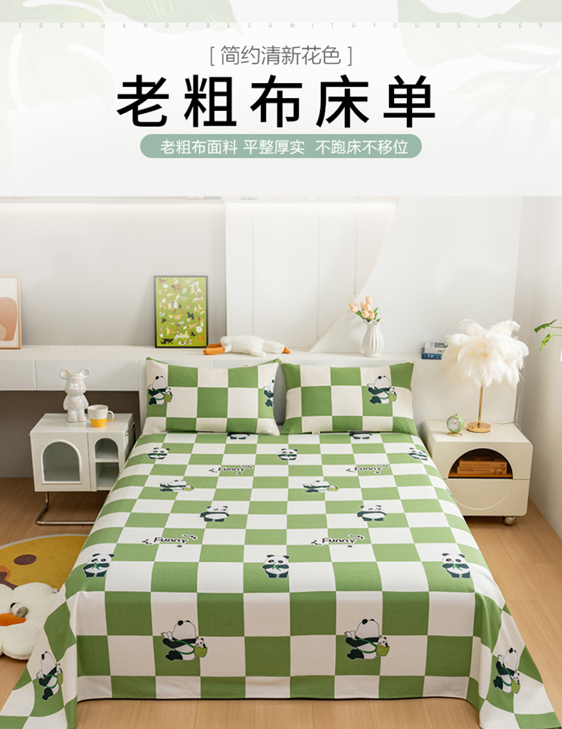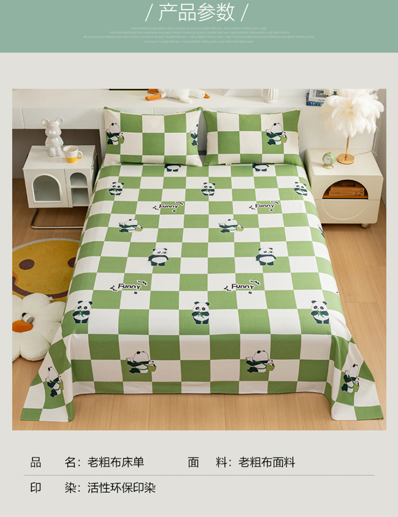 • 91家纺网 家纺一手货源 找家纺 居美良品 2026新款加厚215克老粗布床单卡通花卉可做凉席二三件套 熊猫宝贝