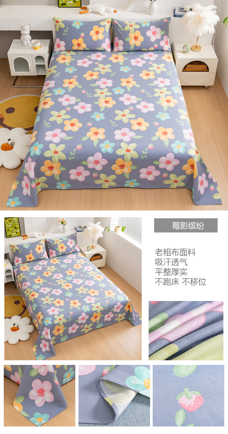(总)居美良品 2026新款加厚215克老粗布床单卡通花卉可做凉席二三件套,竹趣,爱心花朵,朵朵兔,花园熊,滑板狗,酷酷熊,绿意盎然,莓影缤纷,萌宠乐园,诗意花坊,恬静,童梦乐园,熊猫宝贝,绚丽,幽雅,组合叠拍图仅展示不可下单