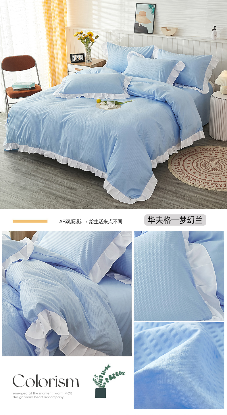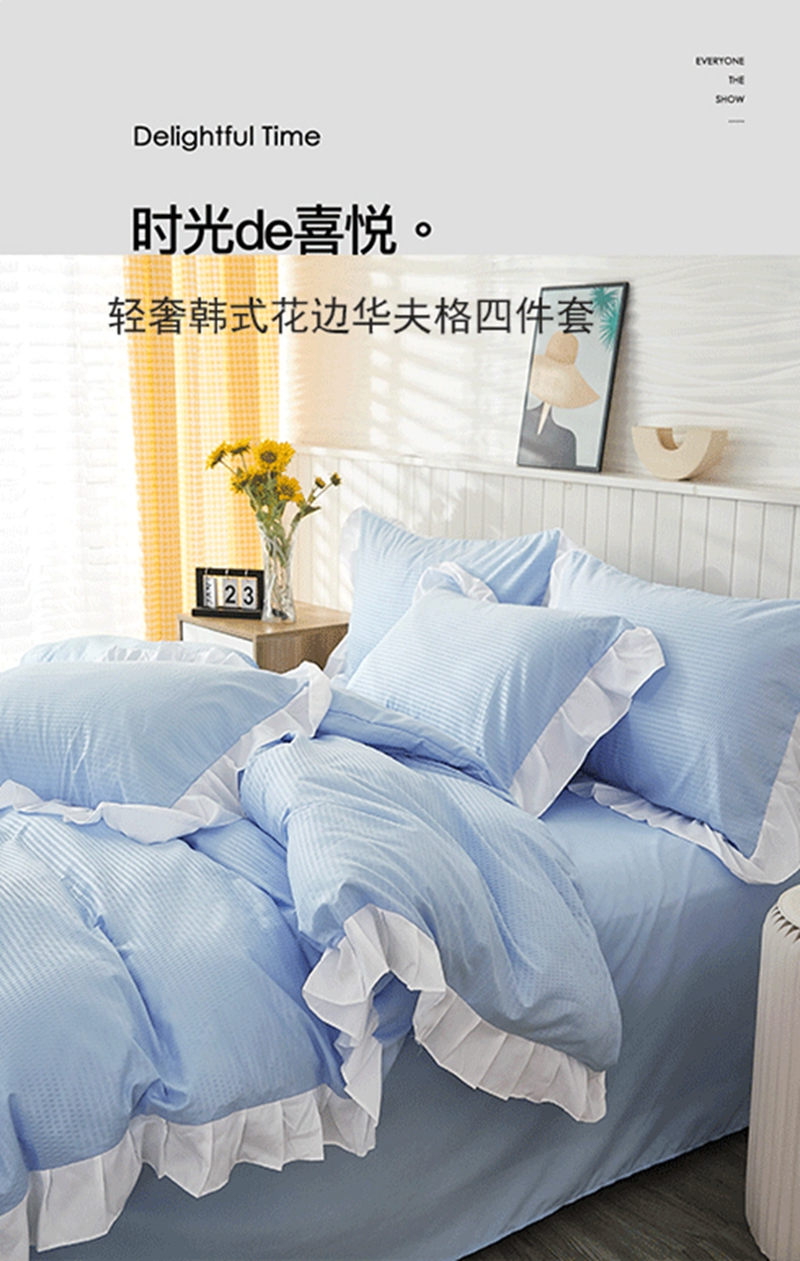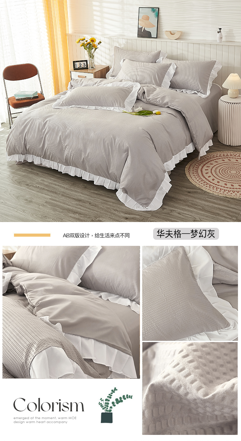 当前位置: 91家纺网 > 商品网购 > 床品套件 > 四件套 > 其它四件套 > 啊雅家居 2026新款轻奢韩式花边华夫格四件套 梦幻兰