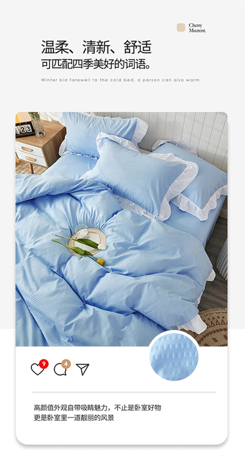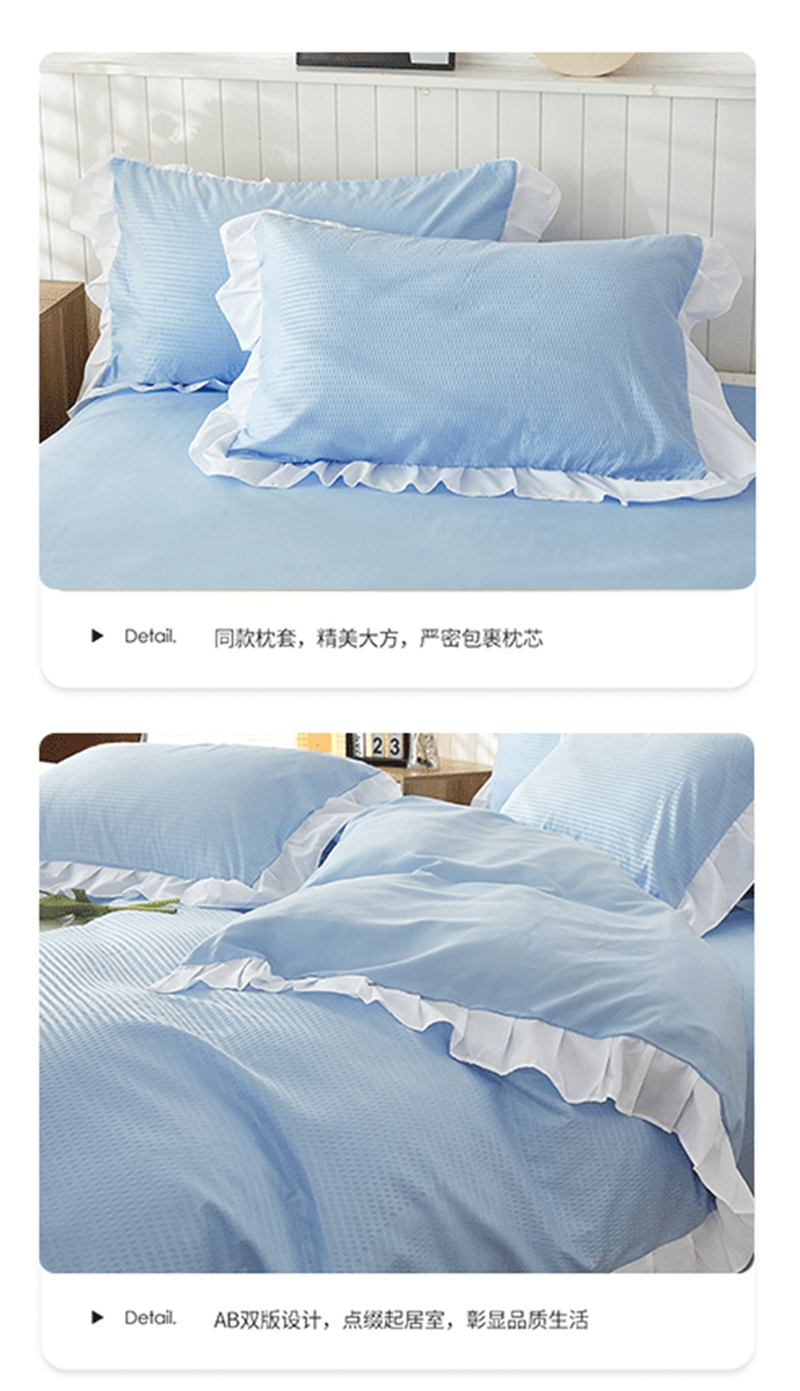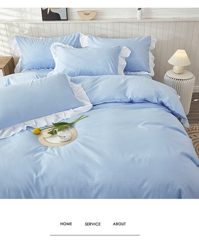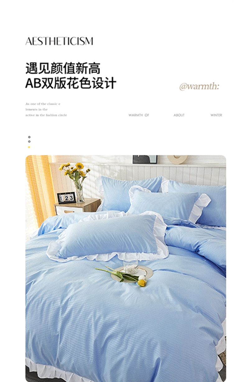 当前位置: 91家纺网 > 商品网购 > 床品套件 > 四件套 > 其它四件套 > 啊雅家居 2026新款轻奢韩式花边华夫格四件套 梦幻兰