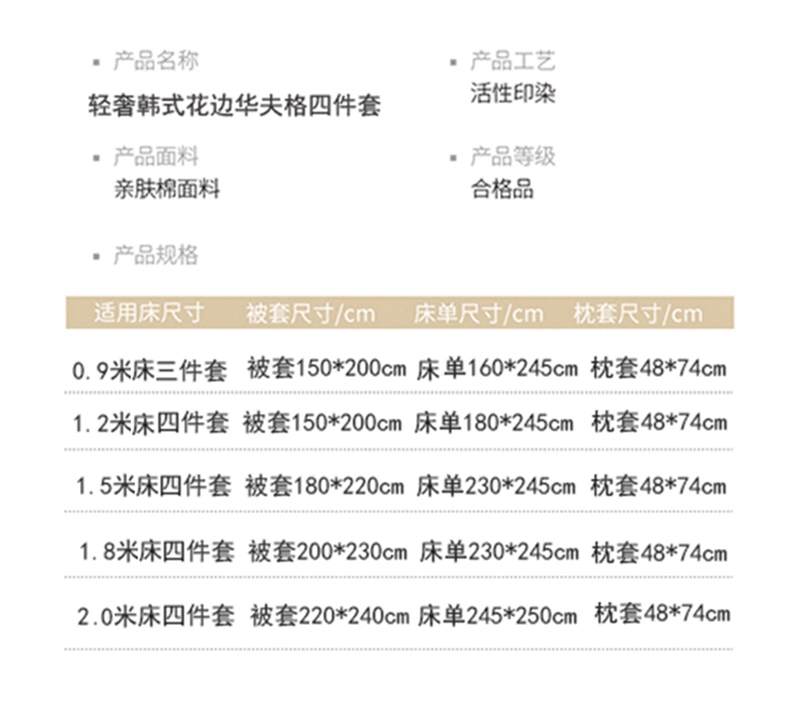 被套200*230cm+床单230*245cm+枕套/对 | ¥60.00 |