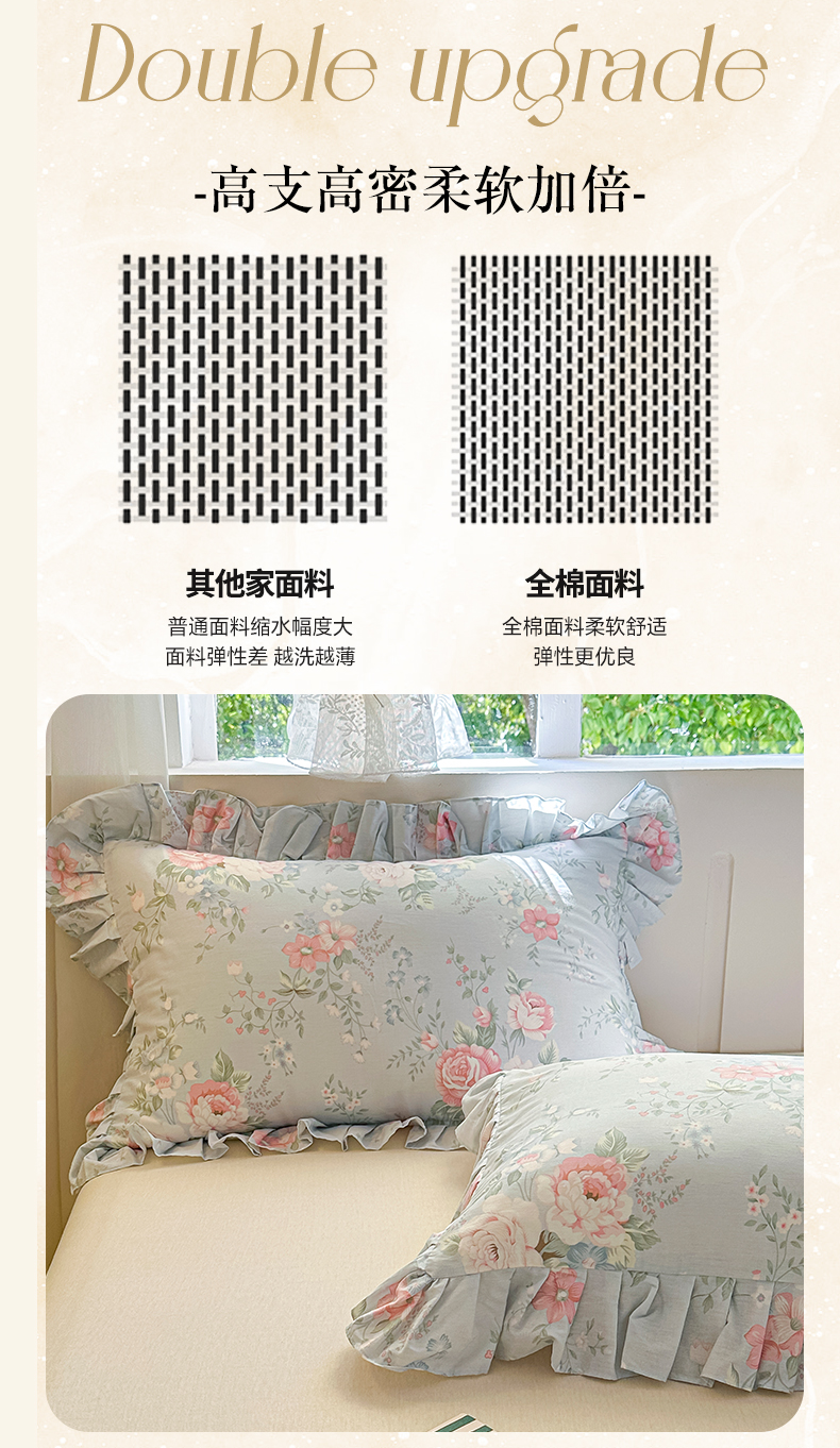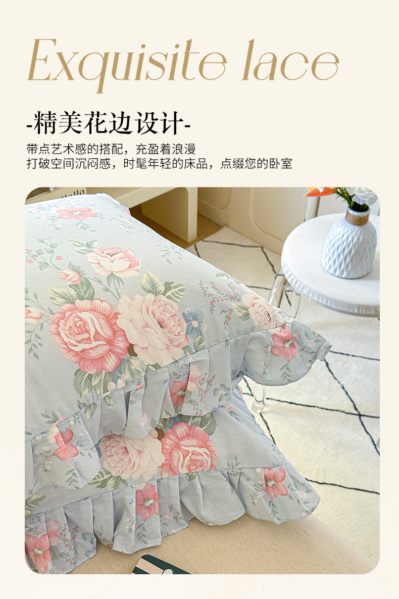 (总)忘忧草 2025新款全棉133*72纯棉小清新床裙花边四件套,妃子笑,花开满满,花里梦,卡芙卡,陌上花颜,倾城繁花 灰,倾城繁花 紫,森物语,屋顶花园,樱桃浪漫,遇见浪漫,云香