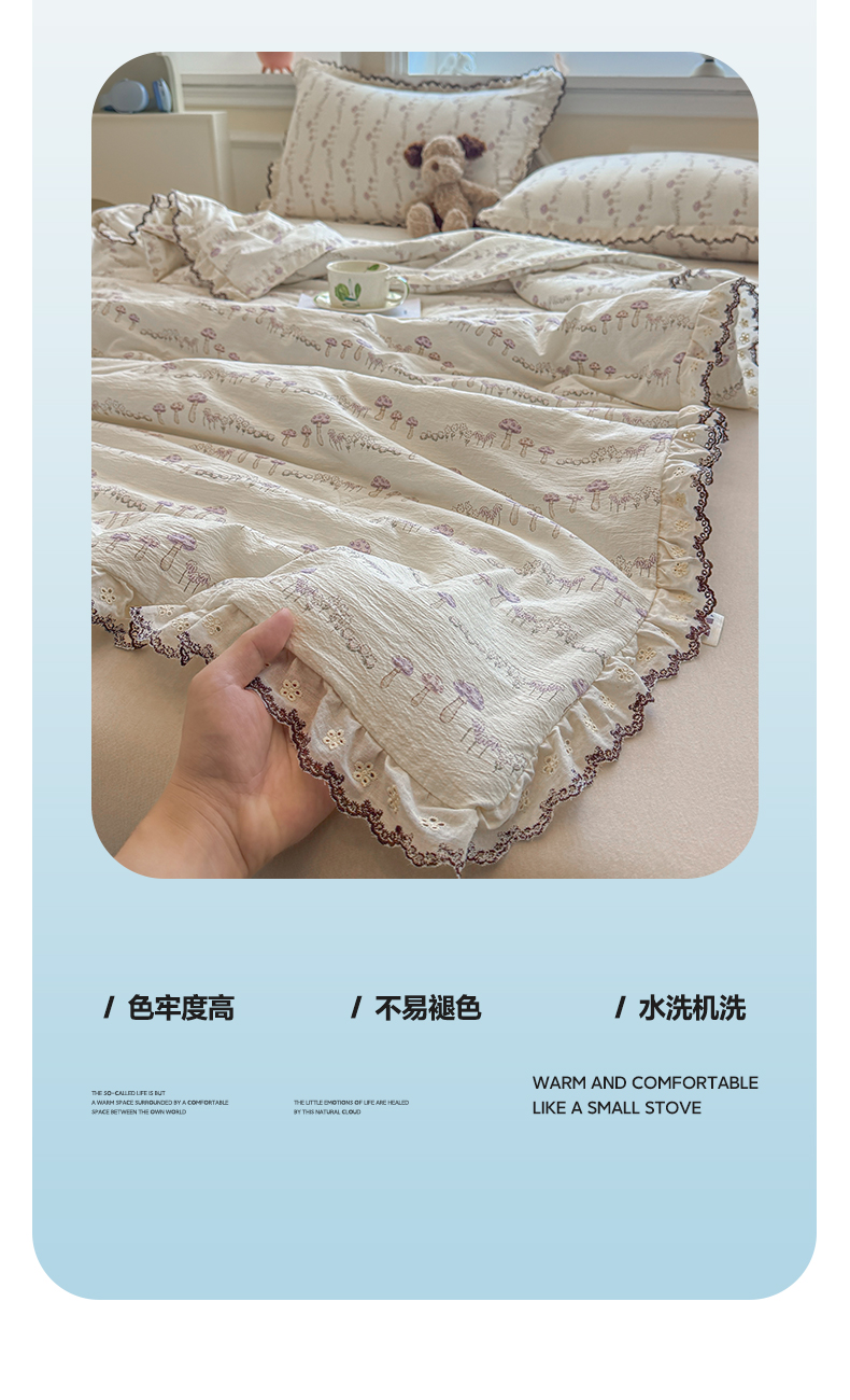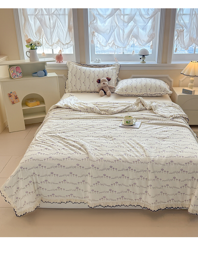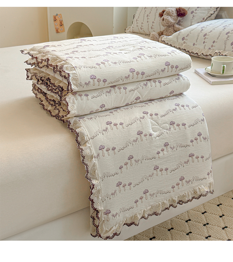 商品名称:名兮家居 2026春夏新款韩版花边款皱皱纱夏被夏凉被空调被 蘑菇森林
