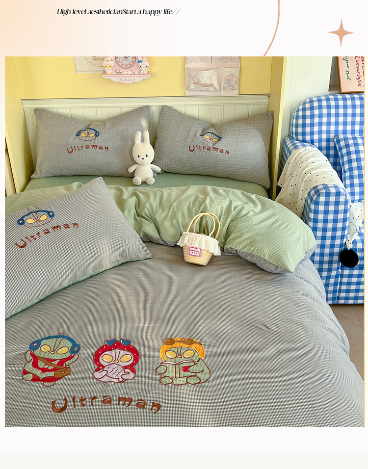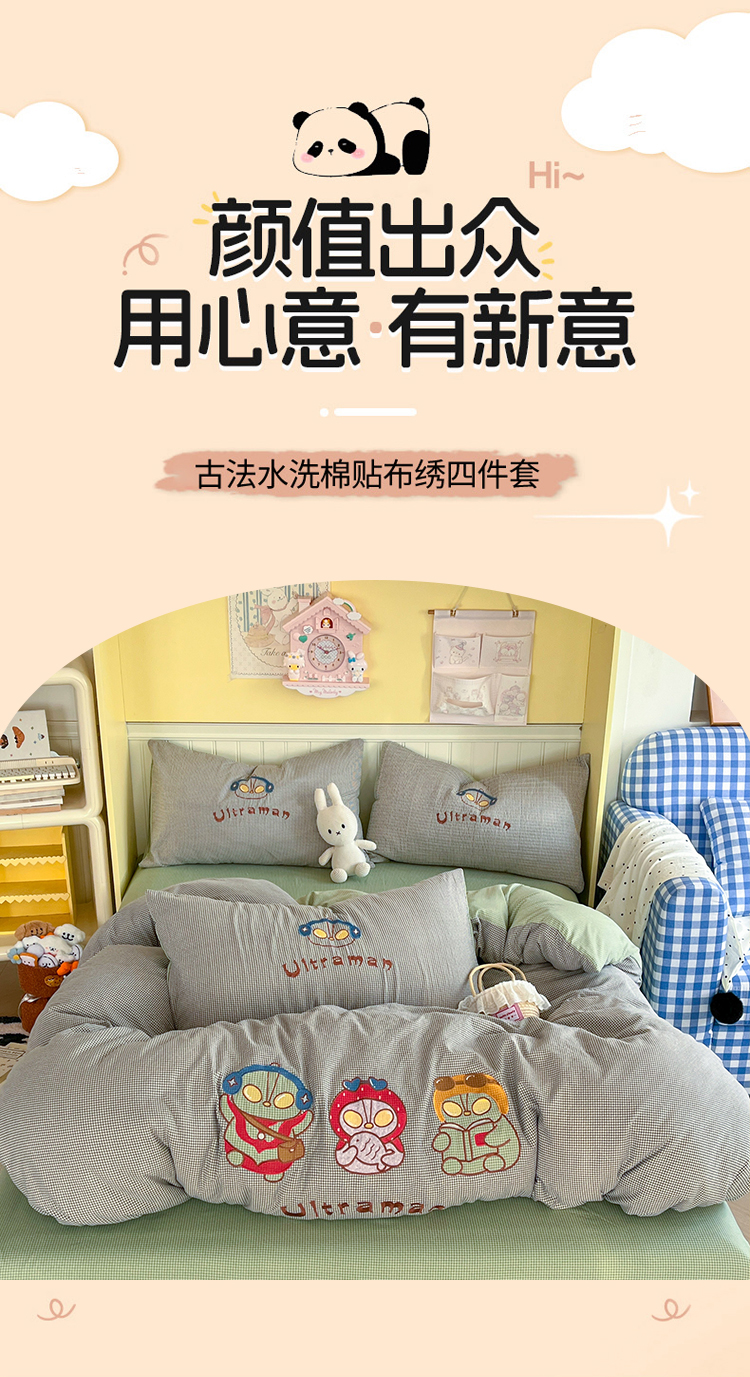 (总)宜家坊 2026直播热款贴布绣加厚仿棉古法水洗棉夹棉床盖,熊猫卡皮,奥特兄妹,吉象三宝,美小蒂,萌萌兔绿,旺财狗狗