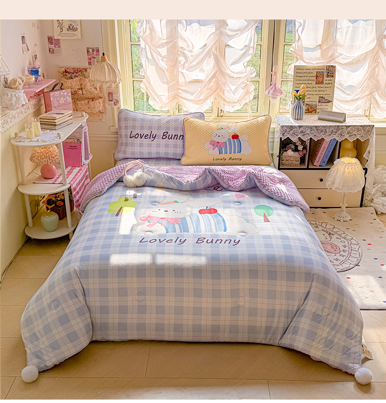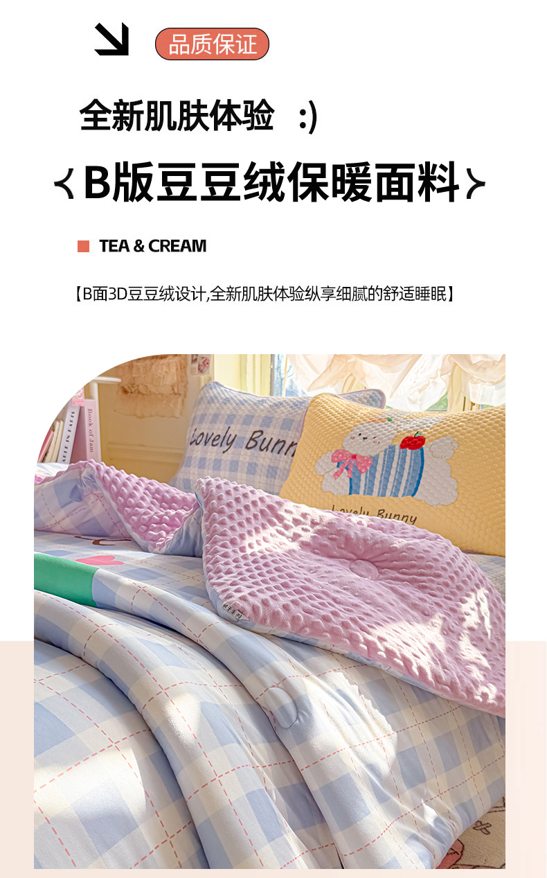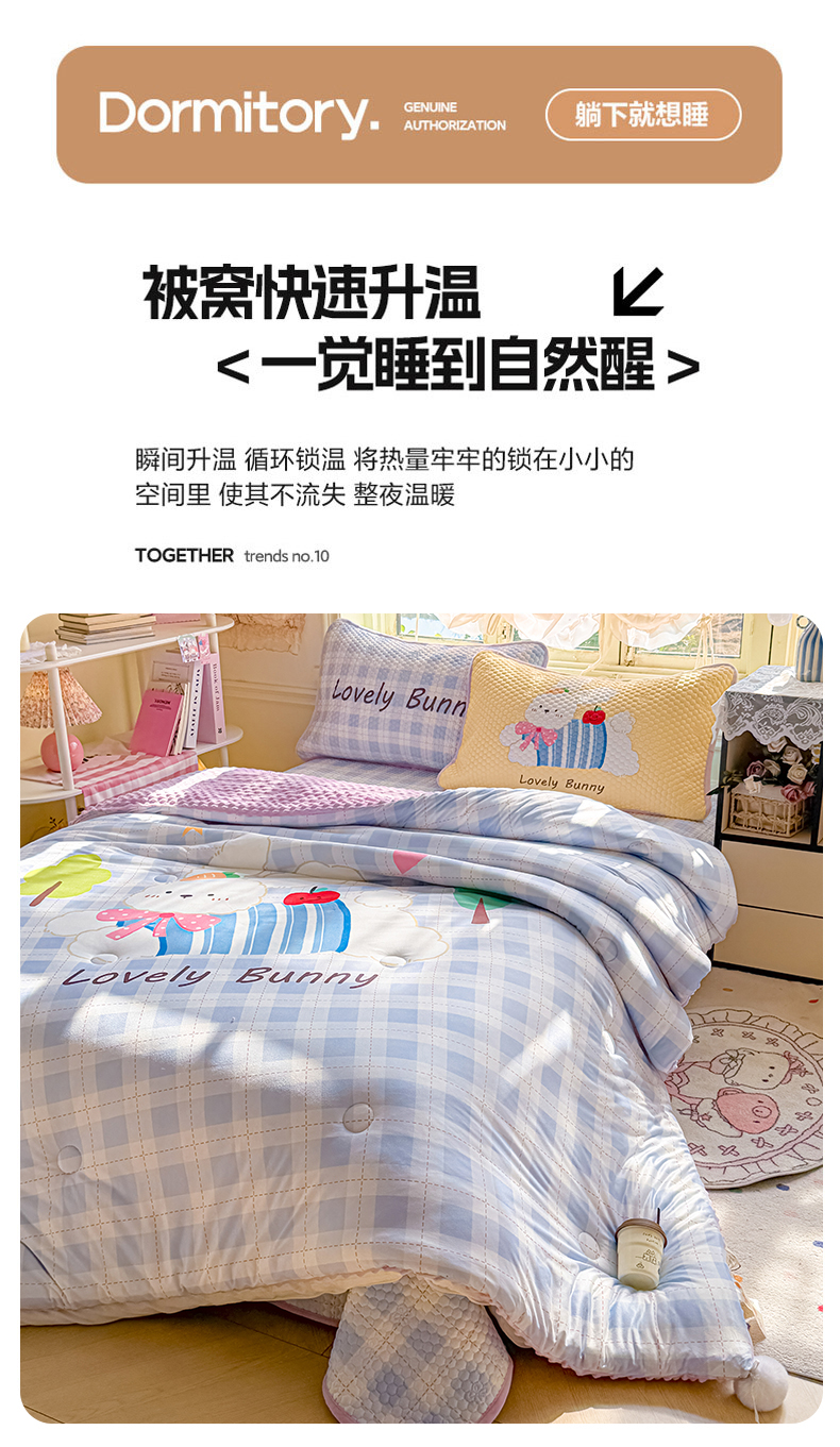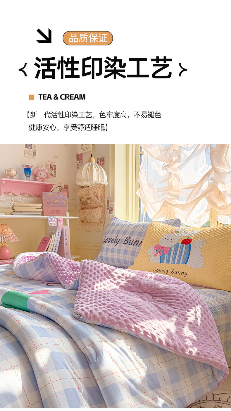 商品名称:宜家坊 2026直播热款A类针织棉豆豆被夏被春秋被空调被儿童学生大版卡通被子被芯 小兔乖乖