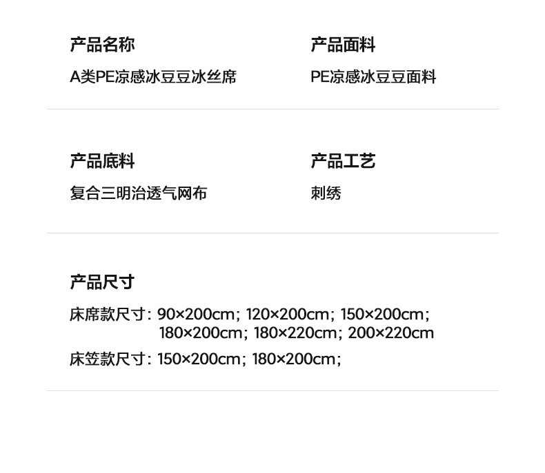 180x200cm床笠款单凉席+枕套一对 | ¥118.00 |
