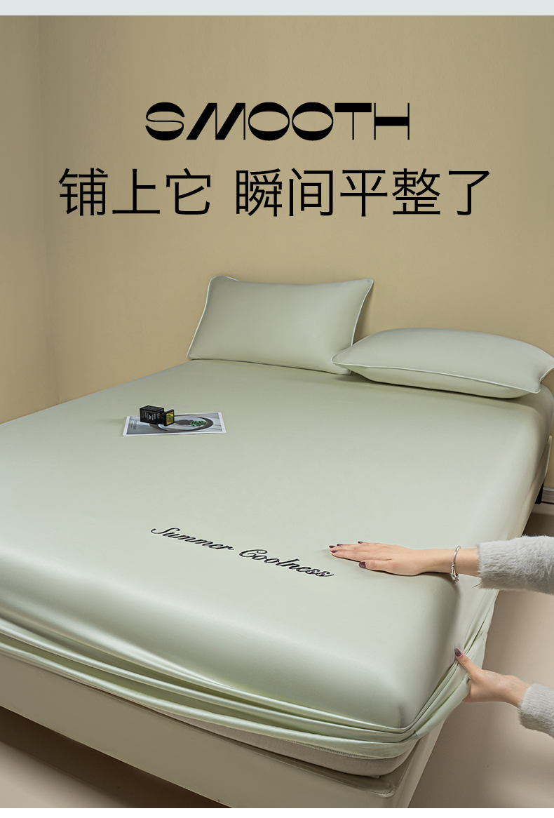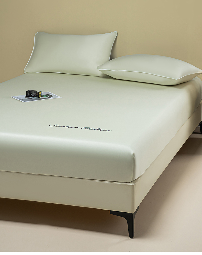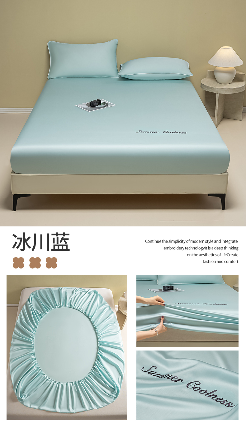 • 91家纺网 家纺一手货源 找家纺 (总)美澳家纺 2026春夏新款纯色刺绣凉感水洗冰丝真丝床笠三件套,宾利兰,冰川蓝,贵族白,奶酪黄,嫩牙绿,绅士灰,香槟黄,曜石黑,钻石粉