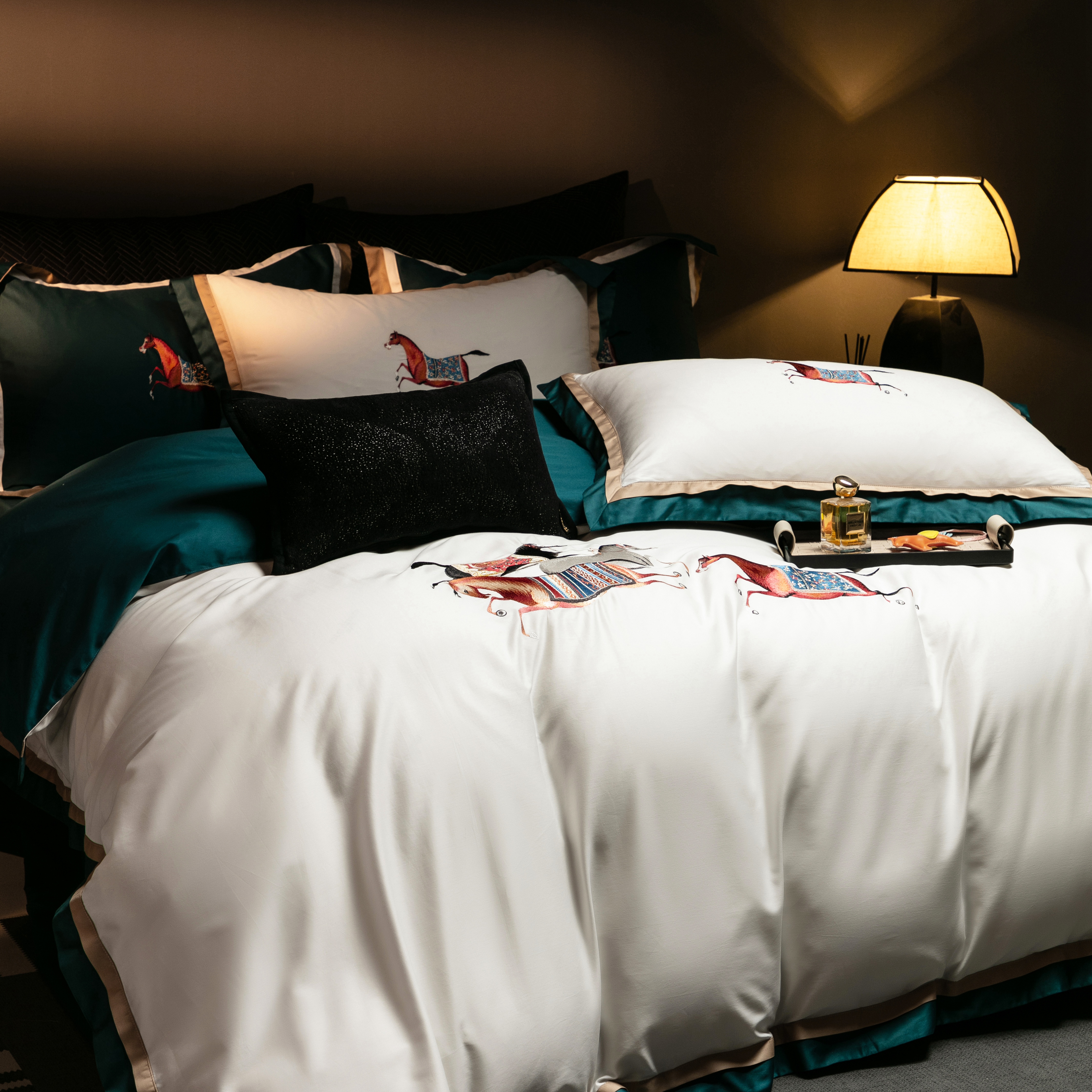 (总)色鬼布艺高端家居主号 2026马年贺岁款100支长绒棉刺绣四件套-奔腾